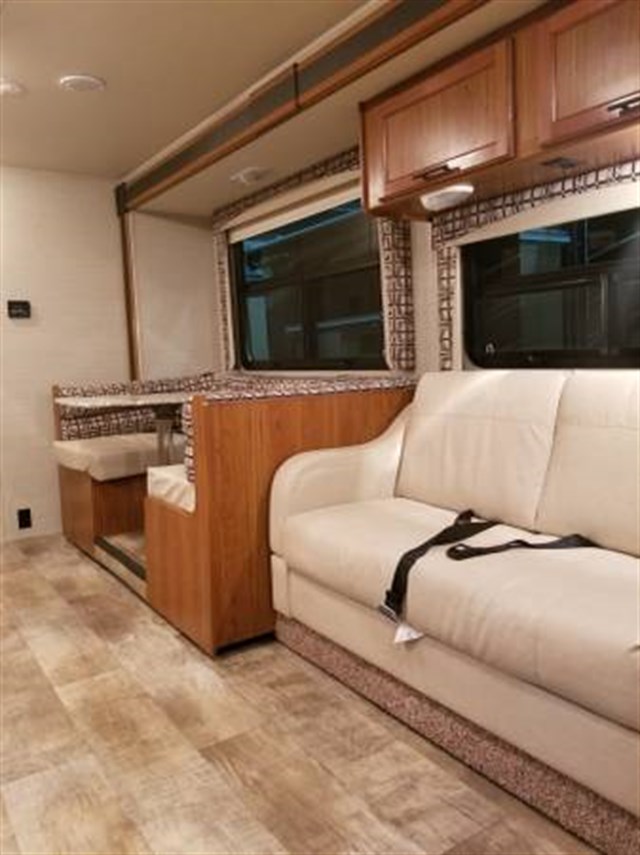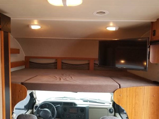 In the front of the motor home, you will also find a cab over bunk and an overhead TV.