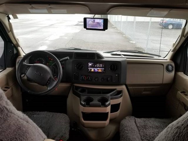 (with bass speaker, touch screen, GPS, CD), plug in phone and go. TV on electric swivel with DVD. Stove and a microwave / oven combo. Dark tinted cab windows. Sleeps 6 comfortably, easy to drive, great family machine.