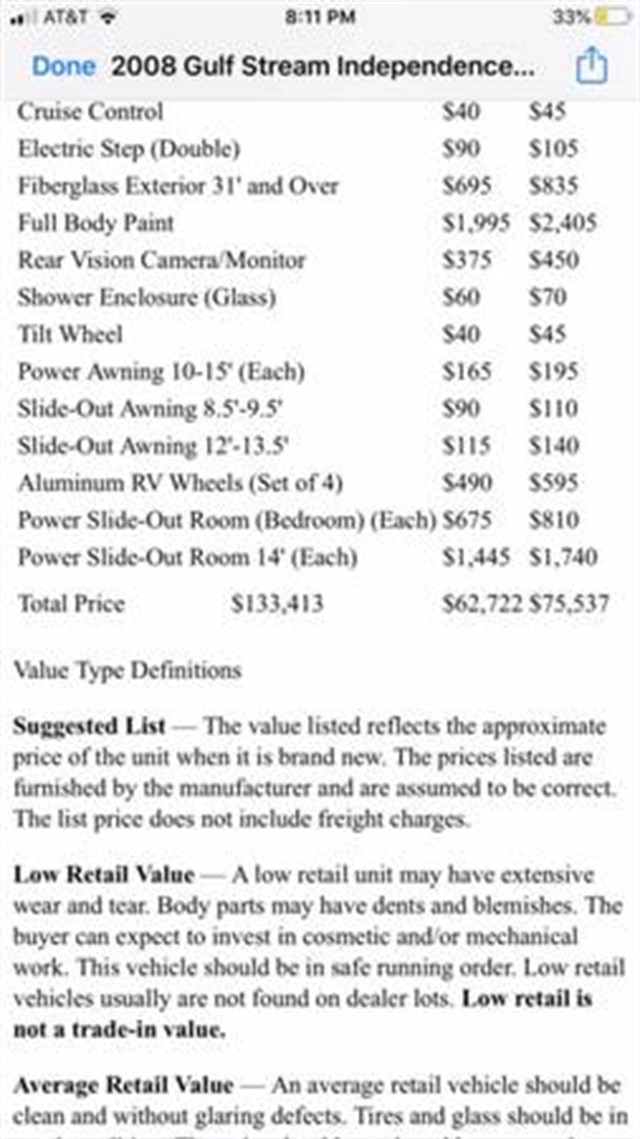 See NADA details in photos (these NADA values were from before I replaced tires, batteries, and the interior makeover of kitchen and walls)