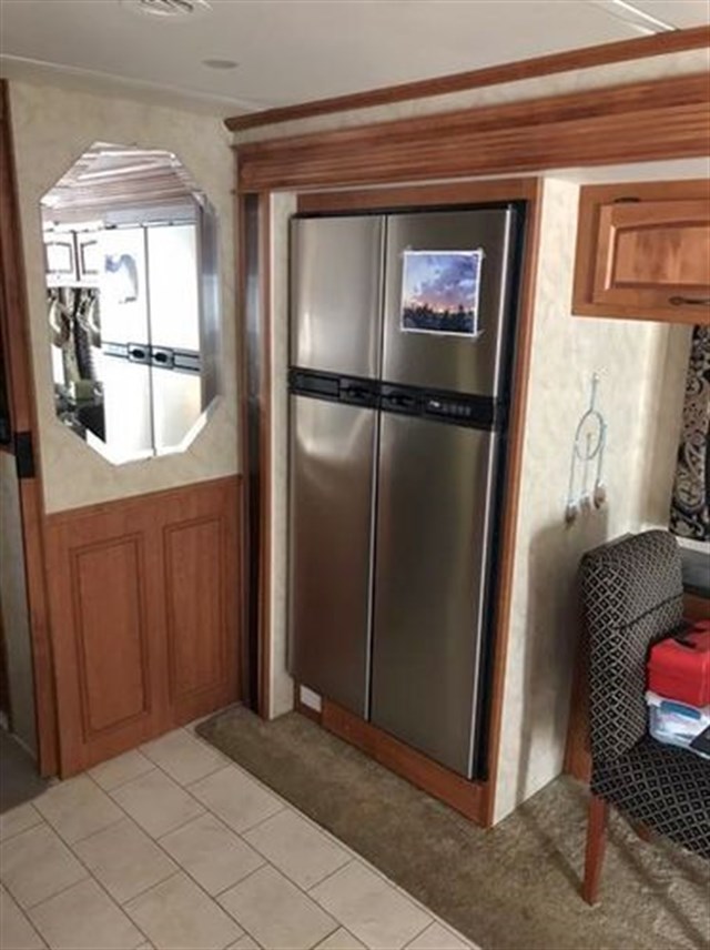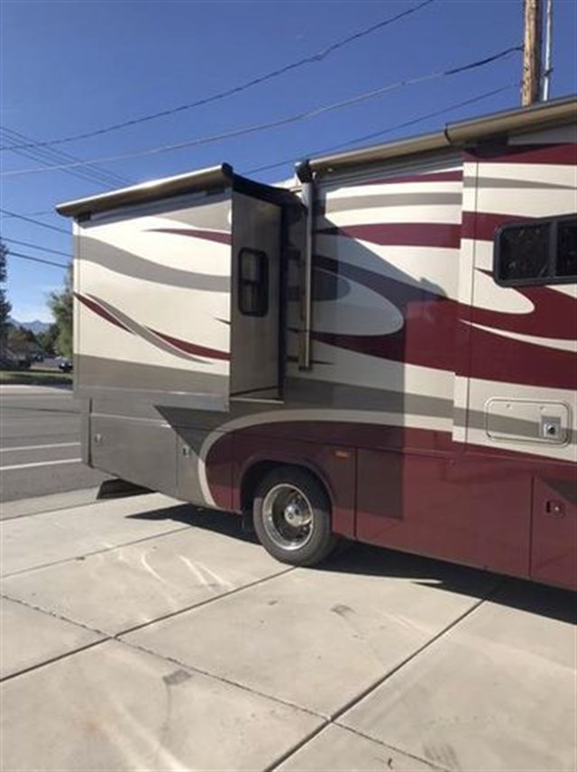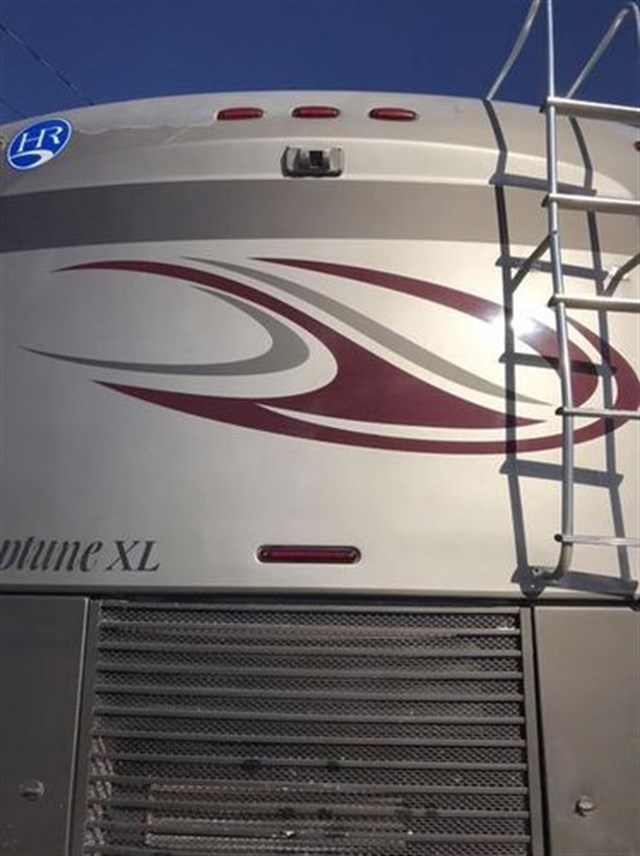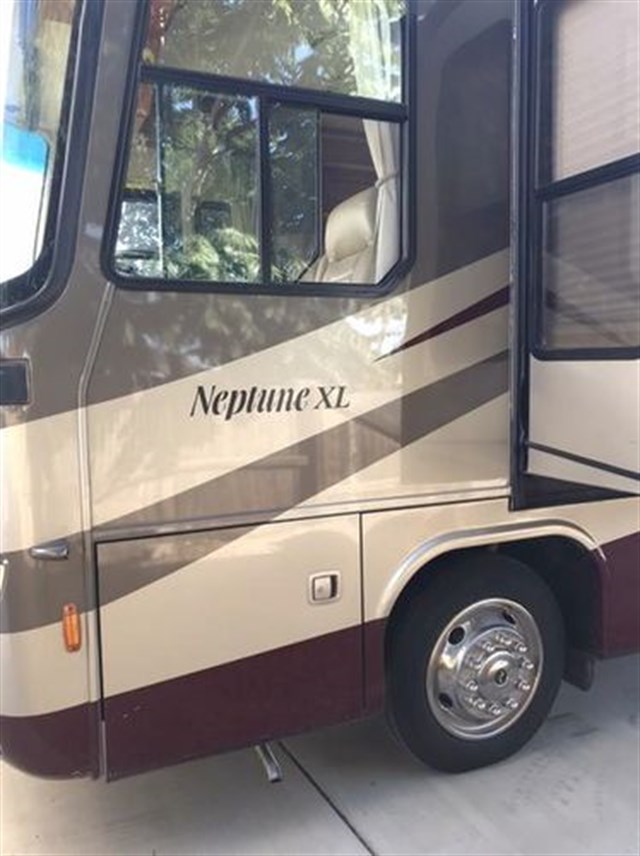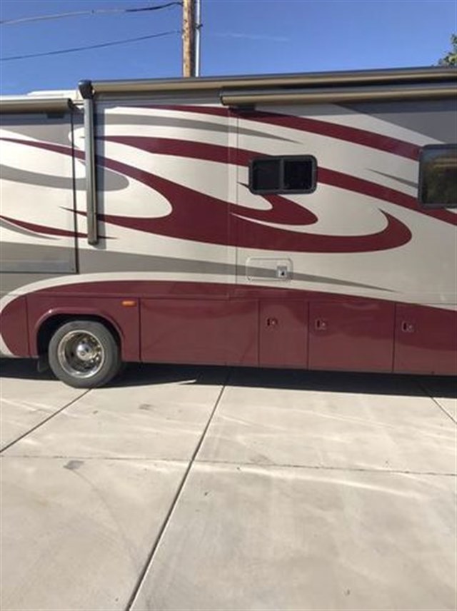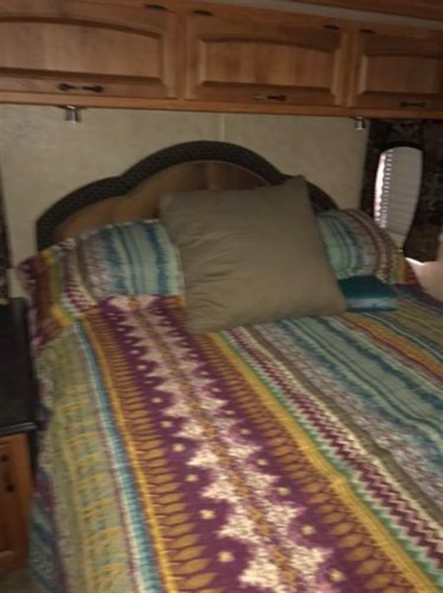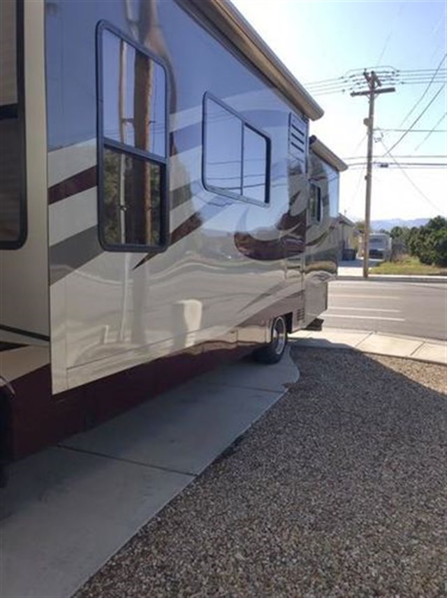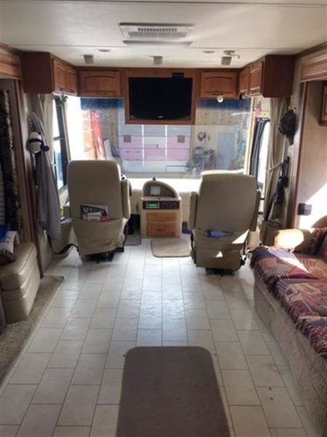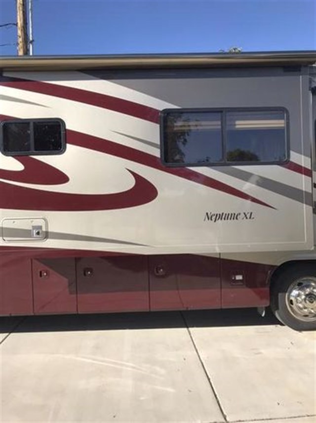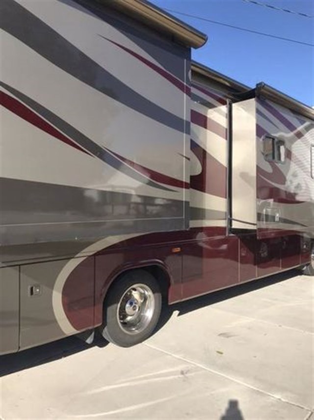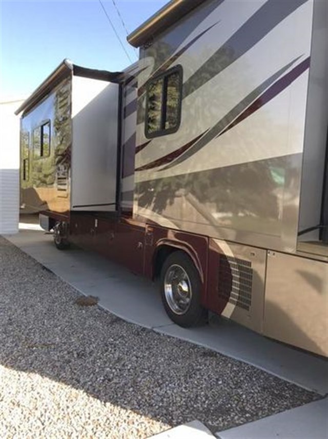 Diesel pusher with 4 slides and approximately 37' in length with a 340HP Cummins diesel engine, Allison 6 speed automatic transmission, Roadmaster raised rail chassis, 8KW Onan generator with low hours, power patio awning, door awning, slide-out room toppers, electric/gas water heater, 50 Amp service cord reel, pass-thru storage, bay heater, 7K lb. hitch, automatic hydraulic leveling system, 3 camera monitoring system, Magnum inverter, solid surface counter, dual ducted roof A/C system and 2 HD TVs , solar panels and much more!