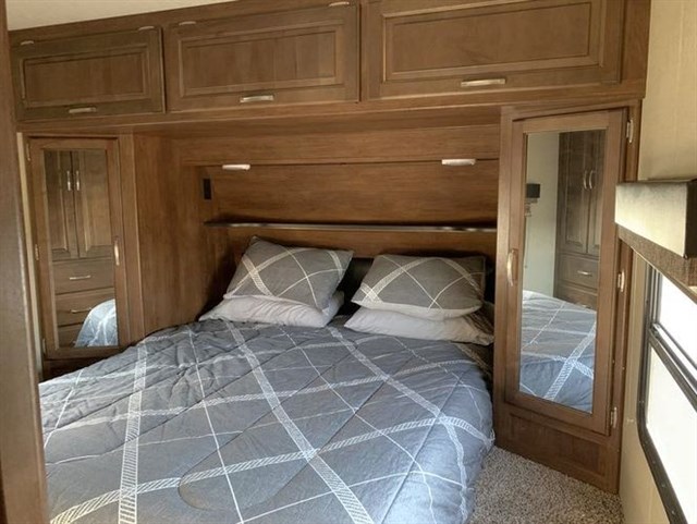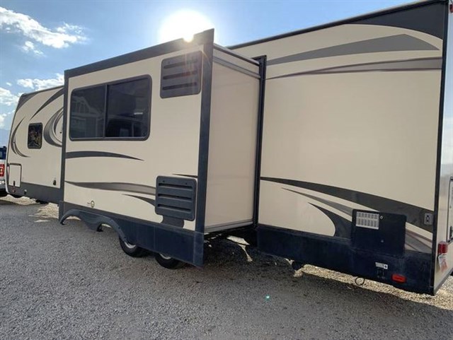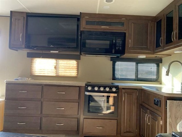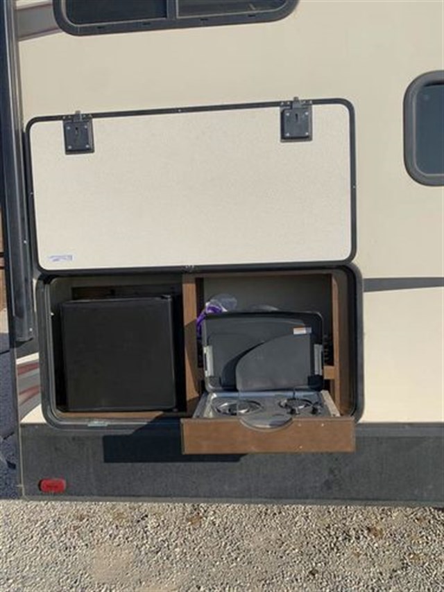 This 35' bumper pull comes with a 4-point sway control bar hitch (over $800 value), 60 gallon fresh water tank, power stabilizer jacks, sound system, tv, outside speakers, tons of storage, the easy to use Nautlius plumbing system, power awning, slide out, outdoor kitchen, microwave, 3 burner stove, fridge, black tank flush system, dual batteries and propane tanks, outdoor shower, tons of plugs and USB charging stations and more. It is also equipped with the Arctic 4-Seasons Package--it's ready for anything.