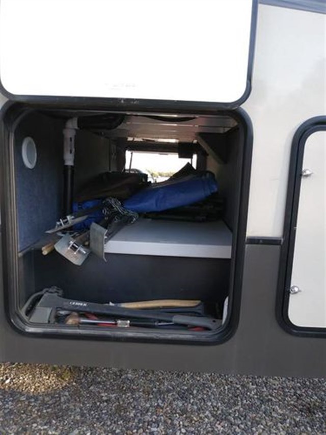Very nice and very well taken care of this Toy Hauler is like new and is a must see , has lots of extras like 2 solar panels on roof and a extra propane heater in kitchen area its great when off grid or dont want to hear heater running all night. And much more! Please call the number below to see.