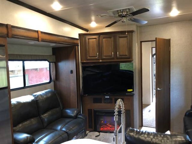 Lightly used, 2 bedroom, 2 bath, 5 slide outs, out door kitchen, entertainment center, theater seats, electric fire place and much more!