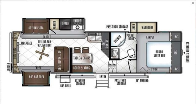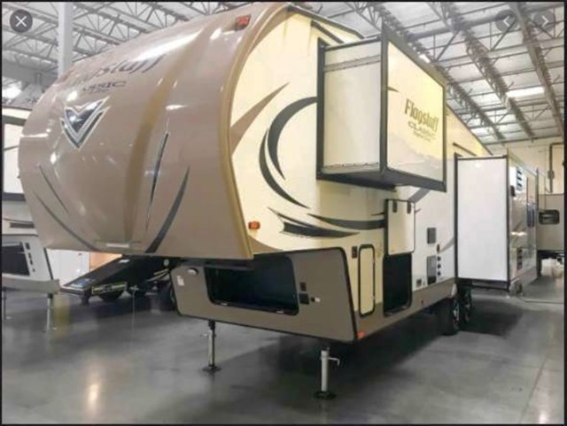 Our family dynamic has changed and bit and we are no longer in the in need for this trailer so we having to sell it. This is a 2018 Flagstaff Classic Superlite fifth wheel trailer. 3 slide outs, sleeps 6. Length is 33.5ft long and base weight is 8584 lbs (dry). Has 6 gallon hot water tank, 2 axles and a 13500 BTU Air conditioning. 43 gallon fresh water tank. two 14lb propane tankes, a trailer hitch to enable you to pull another trailer behind it. 1 motorized awning and 2 twelve volt batteries and overall has 30amp power, along with cable wiring for those camp grounds that do provide cable tv.