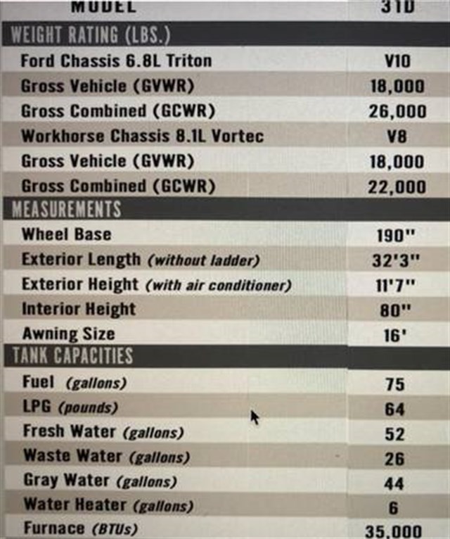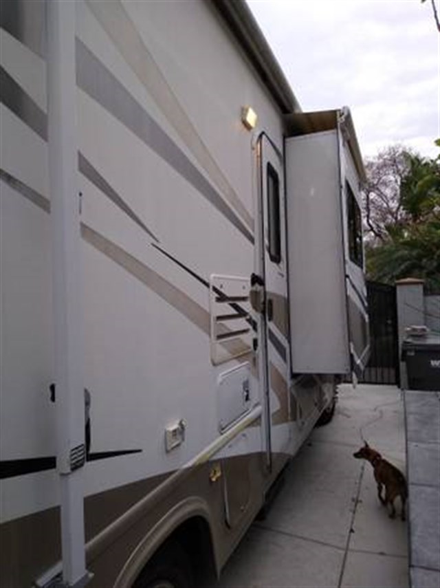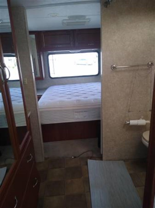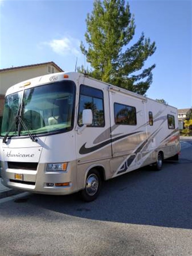 Beautiful 2007 Four Winds Hurricane – ONLY 33,519 miles. AC in front and rear, heater in front and rear. Upgraded Corian countertops throughout entire motor home. Solid wood cherry cabinets . Refrigerator, 3 burner gas stove, microwave and oven, sink. Has dinette. Full shower. Two awnings, one large, one small. Lots of power with a gasoline V10 engine, two sofa beds, includes air compressor storage under queen size bed platform. Class A. Tires in good condition. Two slide outs on each side. One owner. Only $35K