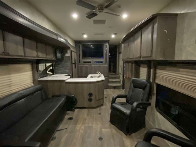 This has all the bells and whistles. This coach is 38 feet long with a 17.7 foot garage to fit all your toys. Options include, full auto leveling with air ride hitch, inverter, 5500 KW Onan Cummins generator, Zamp solar package, on board fuel station, central vac, two roof ac's, Kicker sounds system, huge walk around king bed, sleeps 8, 4 door fridge, outdoor tv, dual power awning's, hard surface counters, stainless sink, and more. This coach is spotless and ready to go have fun.