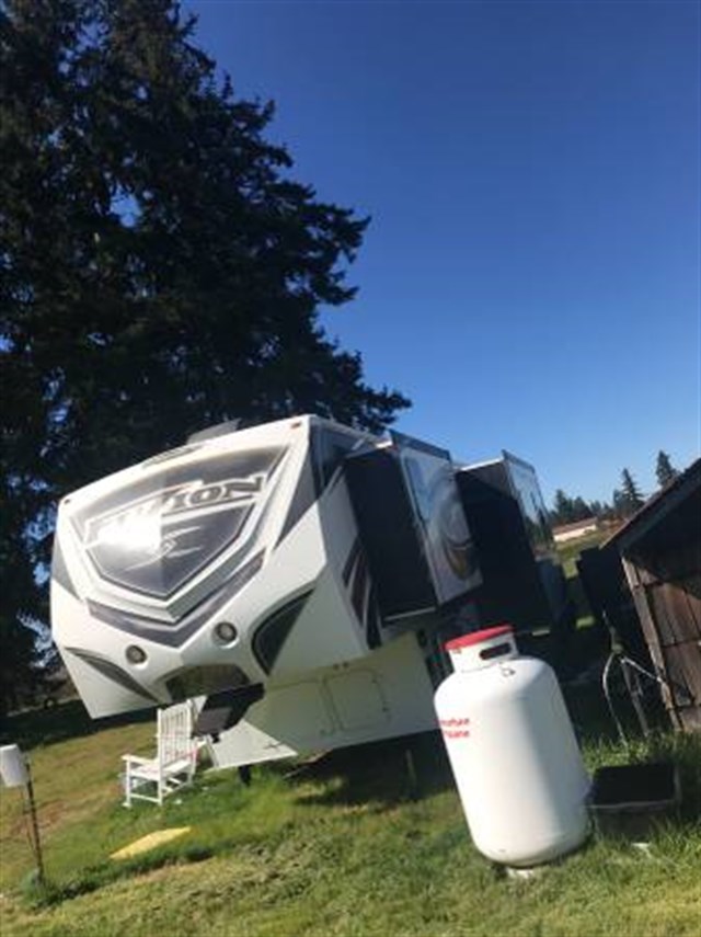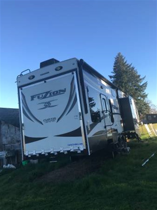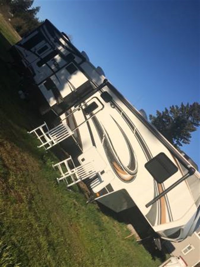 Toy hauler in great shape, 6 beds, 2 bathrooms, full kitchen.