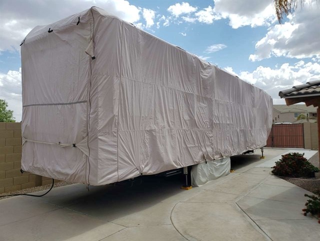 ***Bonus extras are Spendide RV washing machine, wheel covers, plastic rear door screen covers, memory foam mattress topper w/mattress covers (1 King, 2 Queens), 2 free standing swivel leather recliners, two free standing tables, deluxe custom RV Cover. Interior colors are brown and grey. Additional info included in photos. Call the number below for more info. Location in Mesa Arizona. Willing to possibly negotiate for delivery.