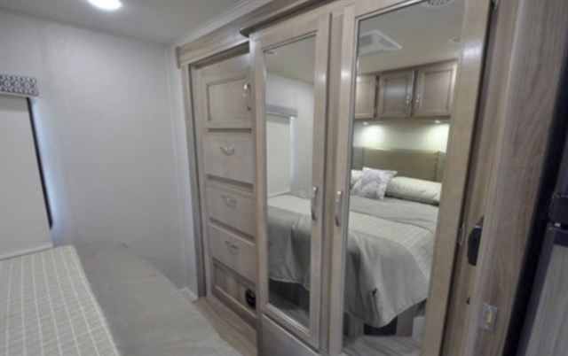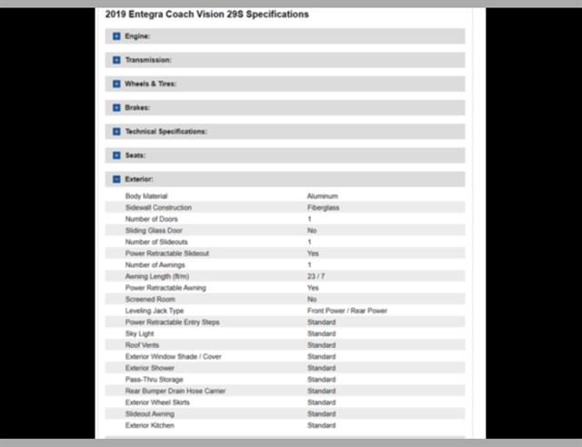 With any Entegra Coach Vision model you will find a quality built home-on-wheels that is ready for any travel adventure that you are. You will find a complete kitchen and bath in each unit along with a queen size bed in the rear of each coach. The kitchen allows you to cook your favorites and save money while not eating out. You will appreciate the skylight in the shower for added natural lighting and more headroom, and the queen bed will allow you a peaceful night's rest so you can keep enjoying each day to the fullest waking refreshed and ready for anything! There is ample storage throughout for all of your things, even outside you will appreciate the easy close and lockable slam-latch baggage doors which feature a space for all of your outdoor camp toys and gear like lawn chairs, coolers, beach rafts, fishing poles, and so much more!