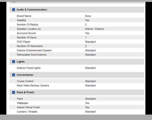 You will love the driver's side full wall slide out in this Vision model 29S. As soon as you enter, you will quickly notice how it provides you ample space for moving about from front to back. The kitchen offers everything that you need to be able to prepare yourself and your partner with healthy cooked food all throughout your journey so you don't have to eat out unless you want to. There is even an outdoor kitchen so on nice days you can stay outside for the entire day if you wish. A 23' electric awning provides the shade or protection you may desire from the warm summer sun or a unexpected light rain, and there is even an outdoor entertainment center as well. Back inside, a complete bath and rear bedroom feature space saving sliding doors. Wake from a comfortable night's rest on the queen bed and head into the 30" x 36" shower with skylight where you can easily get a glimpse of the days weather ahead.