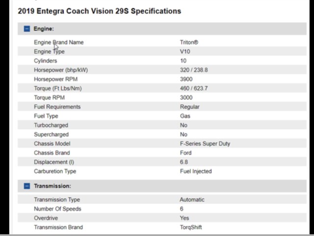 Entegra Coach Vision class A gasoline motorhome 29S highlights: