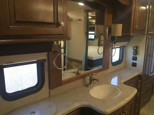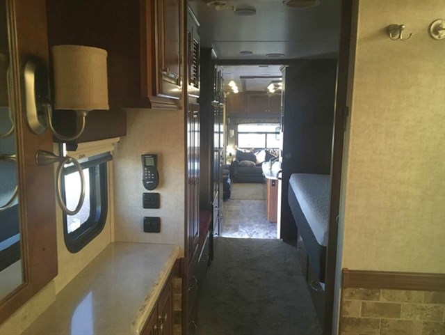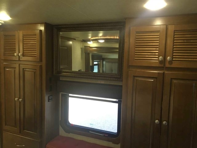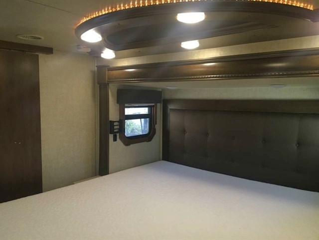 Head up the steps to the right of the entry door and find a bank of storage cabinets for all of your things. A sliding door creates a private retreat in front and the king bed slides out creating more walking around space to enjoy. There are drawers beneath the foot of the bed to help keep things stowed away and organized.