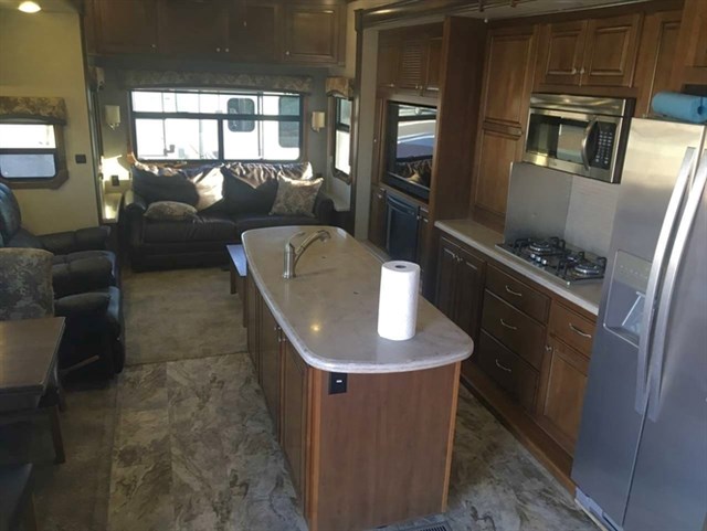 Enjoy spending time away from home in this Landmark 365 fifth wheel Newport model by Heartland RV. This unit offers one and a half baths, a convenient kitchen island, a rear living layout, and a front bath that is not only spacious, and it has been prepped for a washer and dryer if you wish to add for more convenience.