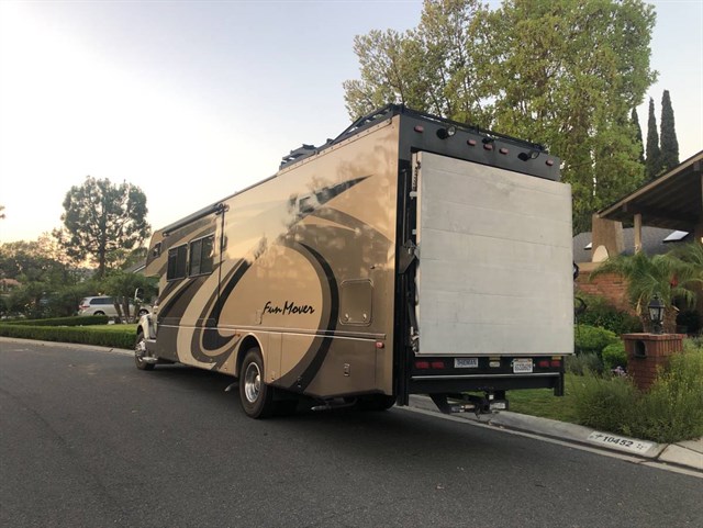Two rooftop AC units, 10’ toy garage in rear, Auto leveling jacks, Electric awning