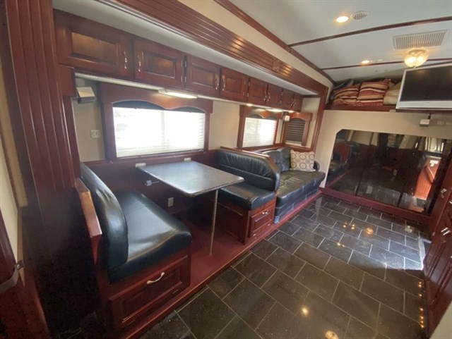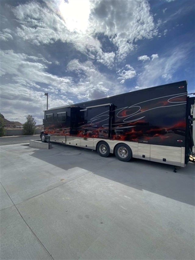 Freightliner with big Mercedes engine. 48ft long, two pop outs, 9x9 garage, sleeps 8 in beds- above cab bed/couch pull out/table conversion/and master bed, 99k miles, three tv's, outside bbq and fridge, featured on Travel Chanels top 10 Sturgis RV's. Call for more info or questions.