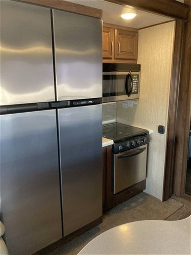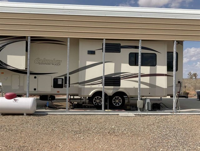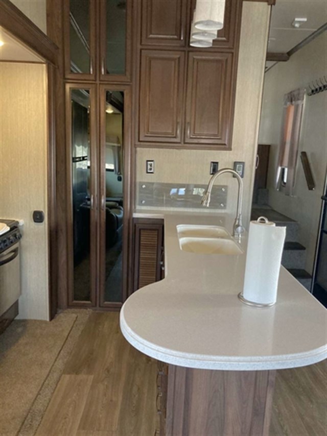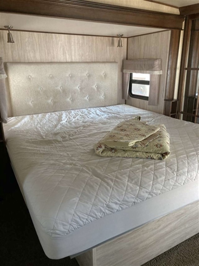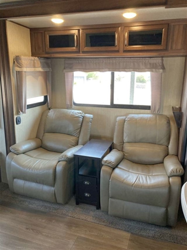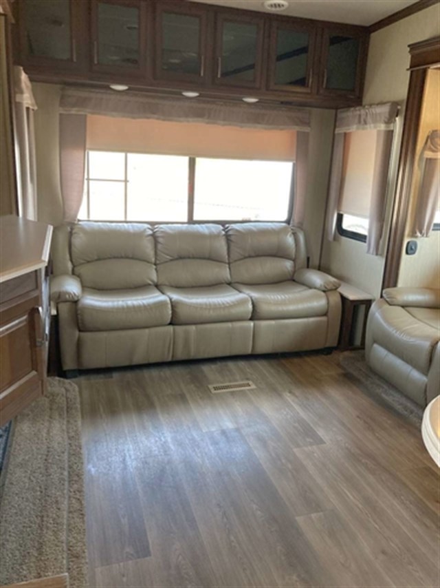 2018 Columbus Palamino by Forest River 36’ fifth wheel. Excellent condition, extra clean. Large residential fridge (electric or propane), king bed, tons of closet space. We have upgraded living room furniture with sofa bed and two power recliners, living room also has a cozy fireplace. Peninsula kitchen gives you lots of space for cooking. Extra shelving has been added to kitchen cabinets. Bath has large walk-in shower with a seat. Comes with an outside kitchen with mini fridge, microwave, two burner stove and cabinet space. Includes two air conditioners. This coach has front basement pass through storage. Comes with automatic leveling and power awning. Includes fifth wheel stand and slide out supports and wheel covers. Also comes with fifth wheel hitch if needed. Located in Mesquite, NV
