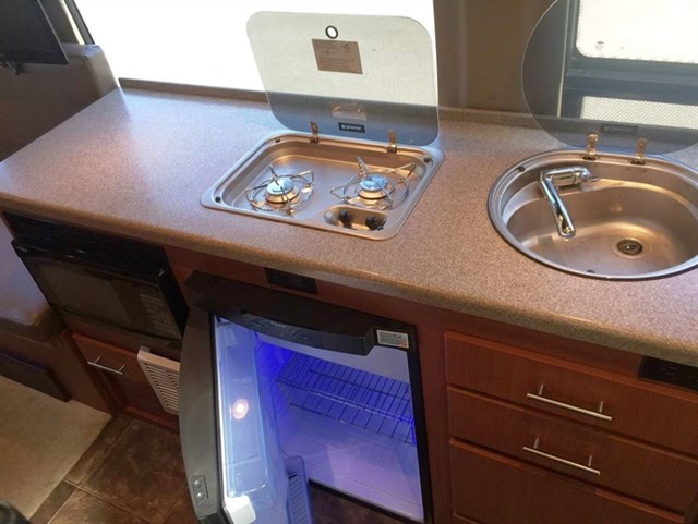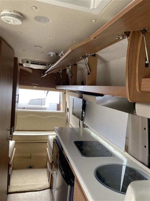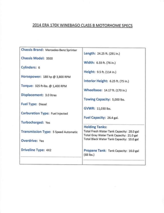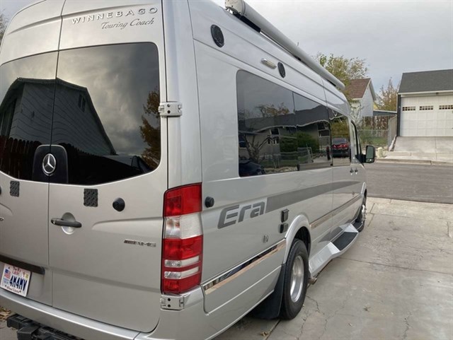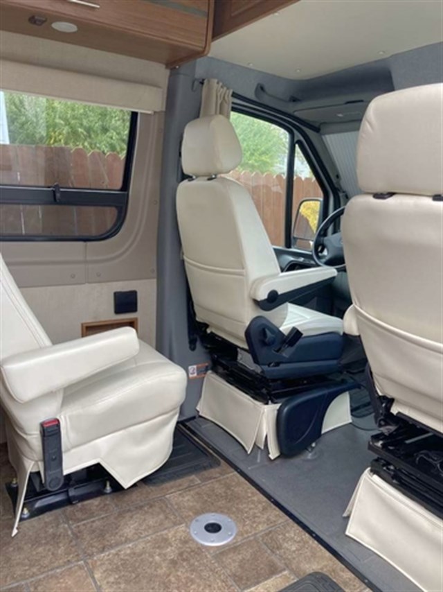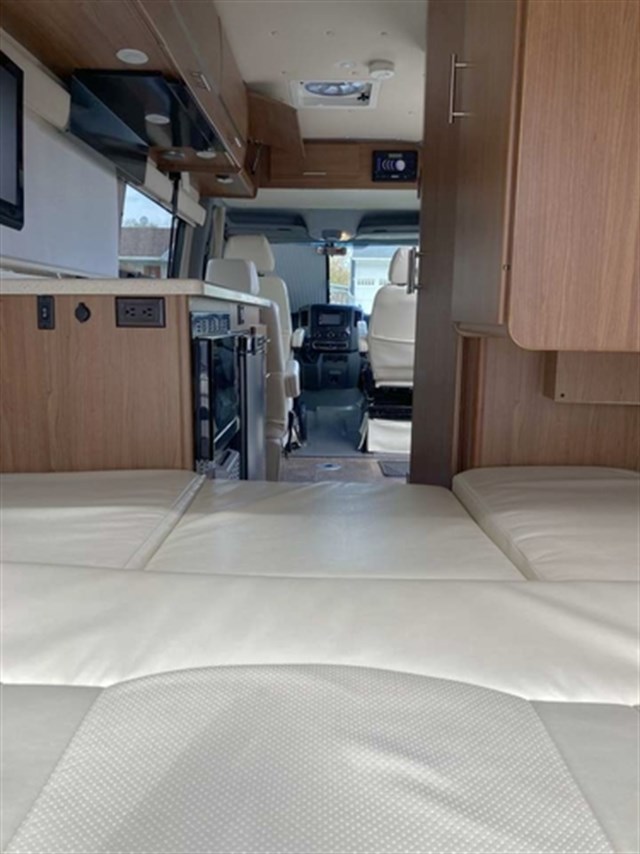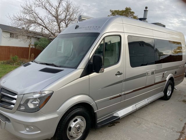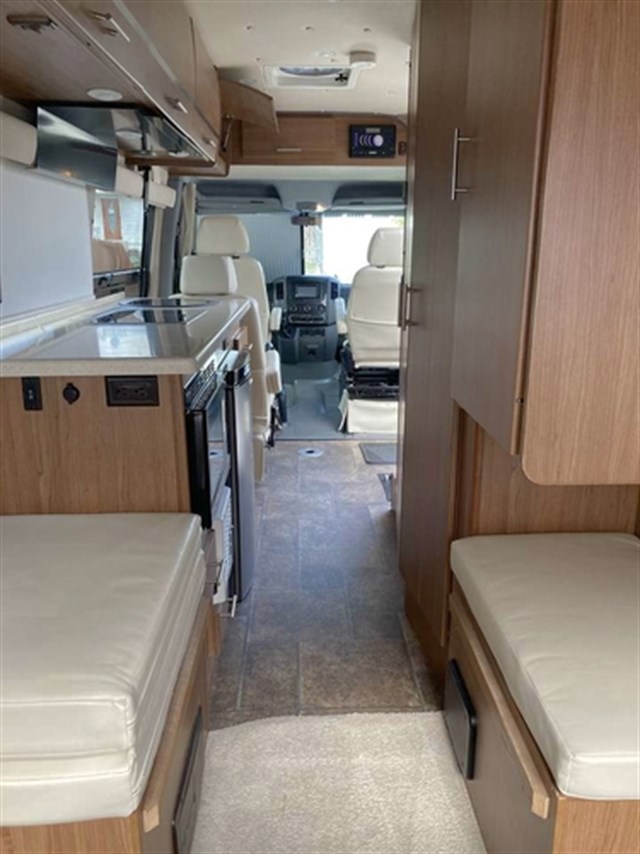 This RV is approximately 24 feet 3 inches in length and features a Mercedes Benz diesel engine, Mercedes Benz Sprinter chassis, aluminum wheels, rear camera, A/C, diesel generator, GPS, keyless entry, power windows and door locks, electric & gas water heater, power patio awning, black tank rinsing system, water filtration system, dual pane windows, solar/black-out shades, solid surface kitchen counter with sink covers, microwave, 2 burner range, flat panel TV and much more.