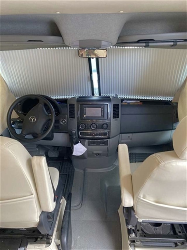 Clean, well maintained Class B motorhome for sale. It handles well and gets excellent fuel economy with the powerful Mercedes V6 turbo Diesel engine. We just got back from Yellowstone and averaged over 20 mpg! All 6 tires are nearly new - plenty of tread. It has everything you need to stay off grid including on-board Onan generator with only 85 hours, or just plug in to a 30 amp service at an RV park. 54,800 miles. Full bath and kitchen amenities. Dupont Corian counter top. Microwave/convection oven. Power awning with LED lights. Jensen entertainment system. Rand McNally navigation system. Power rear bench turns into bed. With its four swivel-base captains chairs and rear bench seat, it has seating and safety restraints for 7 people. It is the 3500 Sprinter chasis with dual rear wheels.