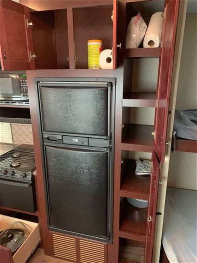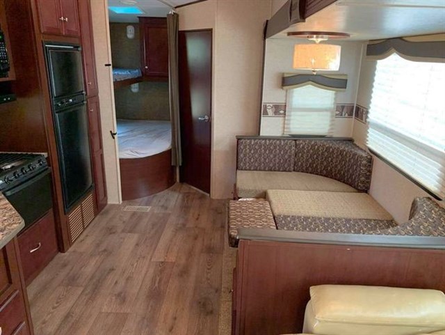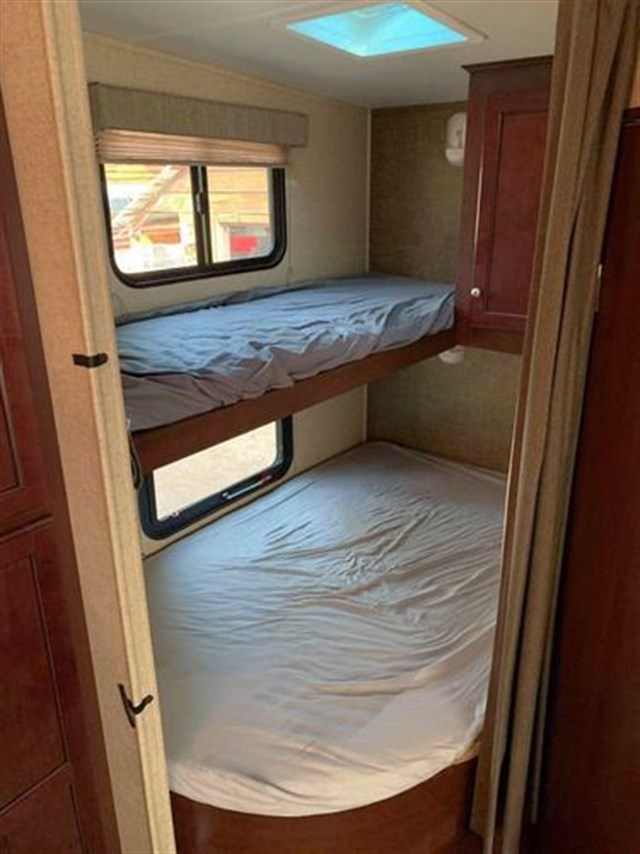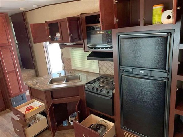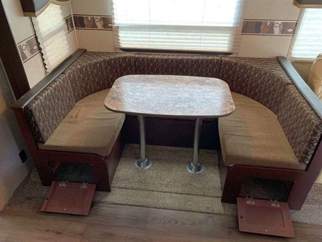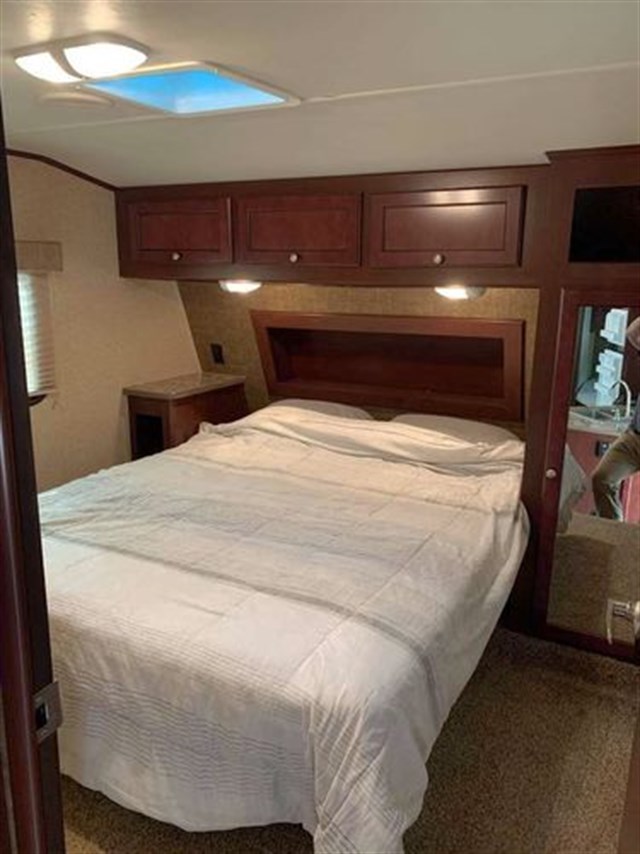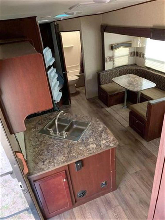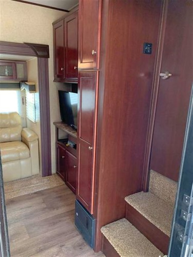 This ElkRidge Extreme Light offers the industry's first low cost 5th wheel priced like a travel trailer with all the features of a 5th wheel. The Heartland Elkridge Extreme Light model E26 bunk house features a U-shaped booth dinette & bunk beds. Options include exterior storage, correct track align system & sink covers. This beautiful fifth wheel also includes the ElkRidge EX Pearl & Plus packages which boasts gel coated molded fiberglass front cap, an 88 degree turn radius, Pearl high gloss exterior fiberglass, painted front cap, painted metal, upgraded graphics and Dexter Axles. Additional features include the Pinnacle Travel package: Bordeaux Cabinets, enclosed gooseneck with TPO, enclosed underbelly, spare tire, twin LP tanks, window blinds, Max Comfort style bedroom with bedspread, bedroom dressing area/full wardrobe, Forest Oak flooring, exterior shower, exterior speakers, AM/FM stereo with CD/DVD player, power front jacks, rear stabilizer jacks, large refrigerator, gas oven with range, stainless steel hardware, microwave, large grab handle, hidden hinges, water heater bypass kit and much more!