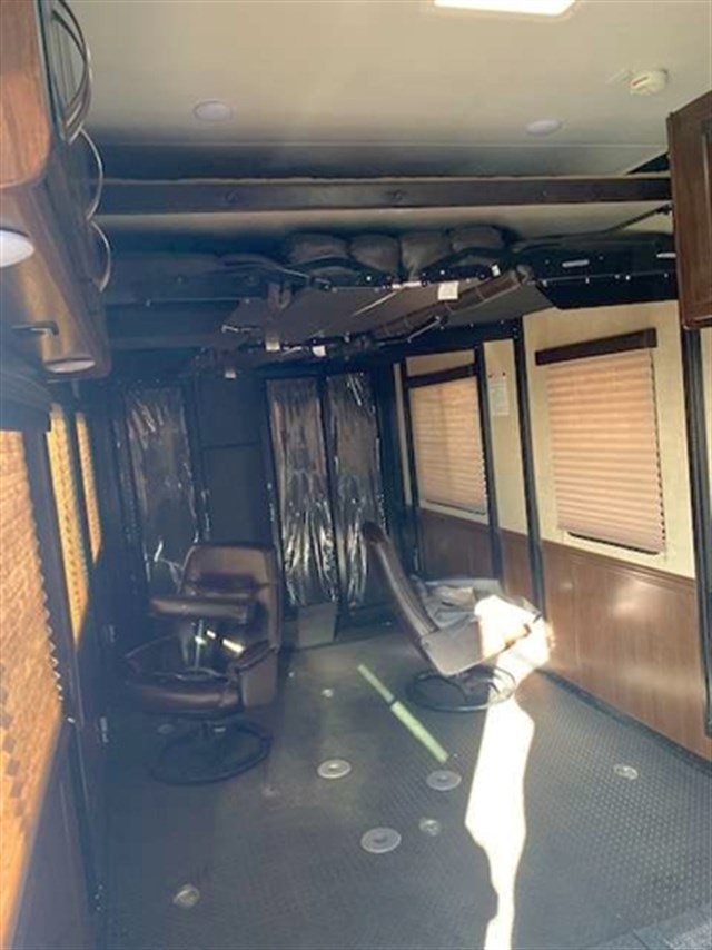 Lurury 38 foot fifth wheel toy hauler. Auto leveling system, onboard Onan generator, fueling station with seperate tank for generator, central vaccuum, 2 slide outs, double fridge and freezer, queen bed and tv in bedroom, 42 inch TV in main area with DVD player and surround sound, electric fireplace, 4 queen beds in main area that raise to the ceiling, 2 reclining chairs with foot stools, table, sliding doors, tailgate has handrails to be used as a porch, outdoor stereo, outdoor shower and lots of storage.