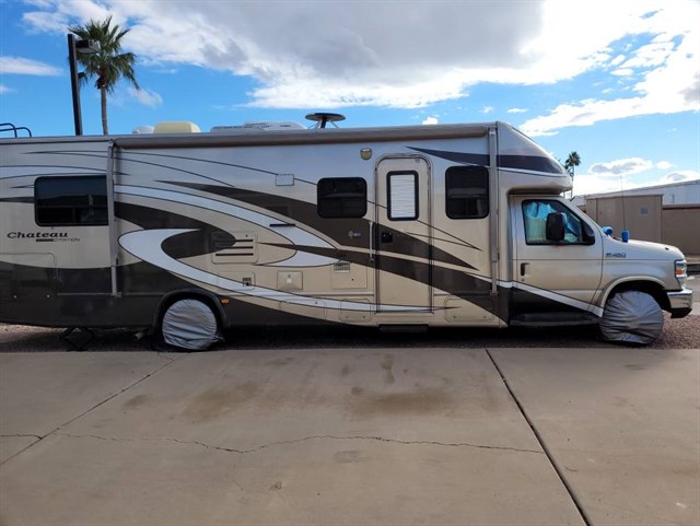 Ford V10 with 31,000 miles in excellent condition. Fiberglass exterior with full body paint. Power slide out. New touch screen radio with Sirius XM, Bluetooth and backup camera. Two TVs, Dish satellite, New A/C, tires have approximately 6K miles, new coach batteries and Roadmaster tow bar and brake system for towing. Will sell 2012 Jeep Liberty Limited Jet all set up to tow with the motorhome. Jeep has extended warranty. Motorhome $64,900 and Jeep $12,000. Both are located in Mesa until April.
