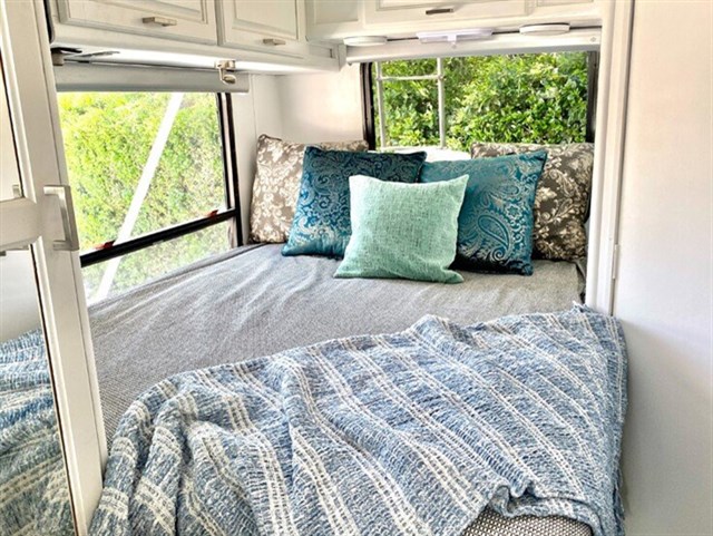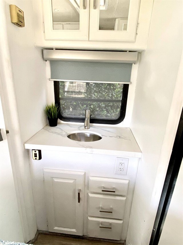 New bathroom Quartz top with new sink, faucet and and swing out magnifying vanity mirror. New full sized premium mattress, only used 2x. (not an RV mattress, its thick). Shower stall has new epoxy all white and new shower head.