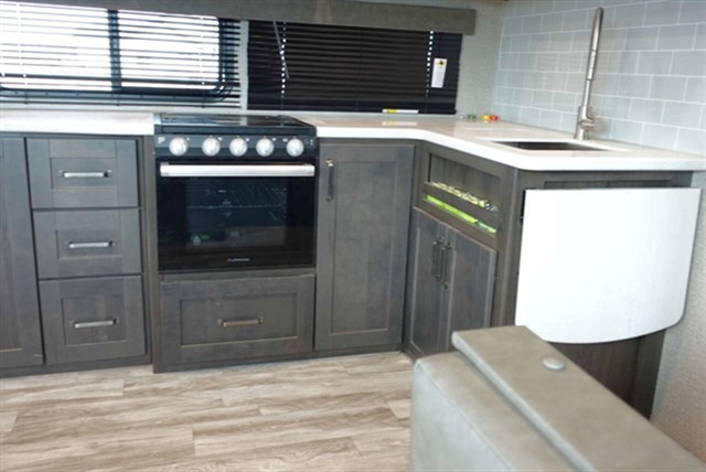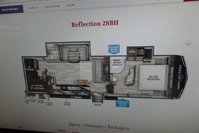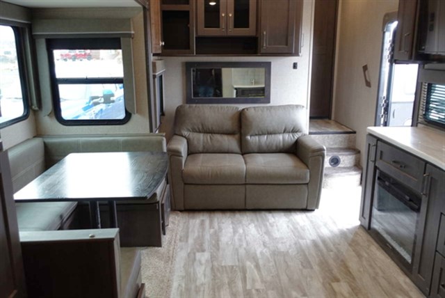 Luxury, value, and towability is what you will find in every one of these Reflection fifth wheels and travel trailers by Grand Design! The mandatory Arctic 4-Seasons Protection package allows you to camp all year round with the 35k BTU high capacity furnace, the Thermofoil insulation, and the heated and enclosed underbelly with circulating heat. Their gourmet kitchens have everything you will need to create home cooked meals including a deep, seated stainless steel sink with a high rise faucet with a pull down sprayer to make clean up easier too. The ductless flooring means there are no floor vent covers to collect dirt or debris, and the universal docking station is an all in one heated location with an EZ winterization system. Easily open the pivoting AXISTEP which will help eliminate debris and moisture from falling inside the unit and also goes all the way down to the ground to make it more stable when entering. Start your next camping trip in true luxury!