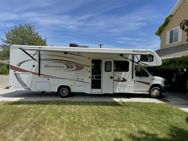 The Ford chassis Sunseeker 3050S features a full wall slide on the driver's side of this class C motorhome.