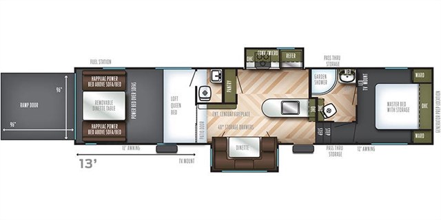 2019 Forest River Vengeance Rogue Floorplan: 324A13 (Toy Hauler)