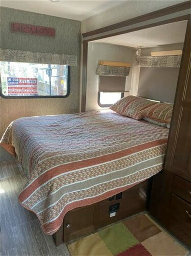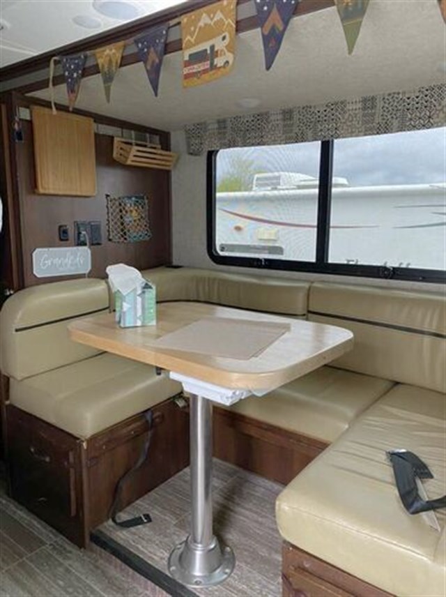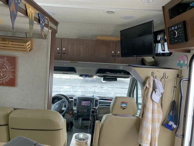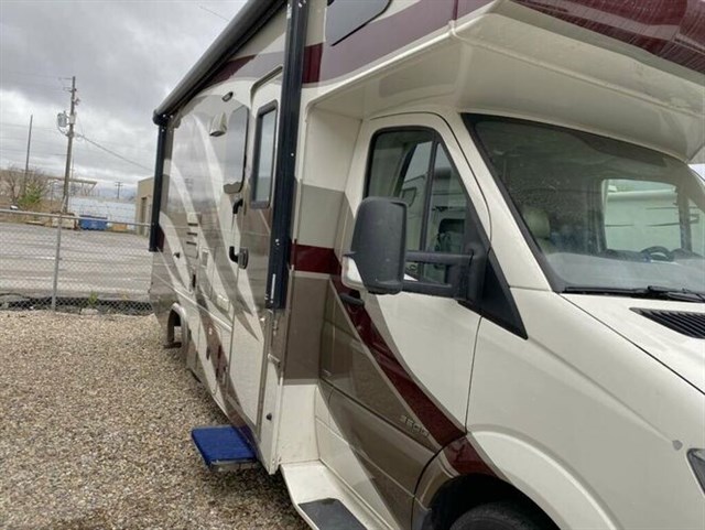 This RV is approximately 24 feet 11 inches in length and features a 188HP Mercedes Benz diesel engine, Sprinter chassis, stabilizers, 3 camera monitoring system, A/C with heat pump, 3.6KW Onan LP generator, tilt/telescoping smart wheel, tire pressure monitoring system, keyless entry, power windows and door locks, electric & gas water heater, power patio awning, LED running lights, black tank rinsing system, water filtration system, exterior shower, fiberglass roof with ladder, booth converts to sleeper, power roof vent, night shades, solid surface kitchen counter with sink covers, convection microwave, 3 burner range, 1 TV and much more!