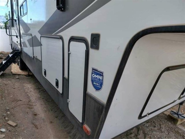 We are currently selling our 2021 Fuzion Impact edition 5th wheel. This is a great camper. We only used it 3 times last year and aren't finding the time to use it this year. It is 44 ft long. Comes with a generator. It has 2 bathrooms ( one full at the front of the camper and 1 half bath in the garage area). 15ft garage area. This camper also has a porch off the back of the garage with an awning. The garage area can be closed off from the outdoors either with screens or windows. Auto leveling, water storage, and gas storage for your toys. The 5th wheel comes with 2 built-in air conditioning units one for the main living area and then the garage. the kitchen and living room area are combined. It does have a counter that you can sit at with 2 pull-out seats. It has plenty of storage over the fireplace and alongside it. In the kitchen, It has a residential-size refrigerator, over-the-stove light, propane stove and oven The couch has recliners at both ends, heated seats, and massage. Aso at each end of the couch, there is a place to put little trays (comes with camper) cup holder. A propane fireplace can heat up the living and kitchen areas. It has a single-person sleep area above the entrance into the garage. The main bathroom has plenty of storage for towels and other items. King size bed, it has a separate closet in the main bedroom along with storage above the bed. Outdoor shower area. We also have covers for both sides of the camper to cover the wheels to protect them from the sun.