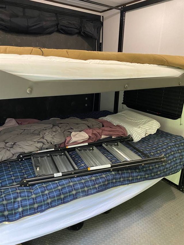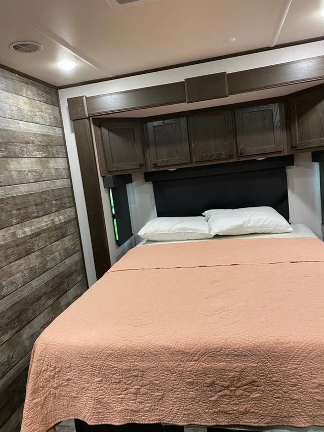 Luxury Toy Hauler. 10’ garage with 2 queen auto beds, 3 slides, 2 of which are in the bedroom & make it so big, huge bathroom & kitchen, tons of storage & built in vacuum system, solar system & much more.