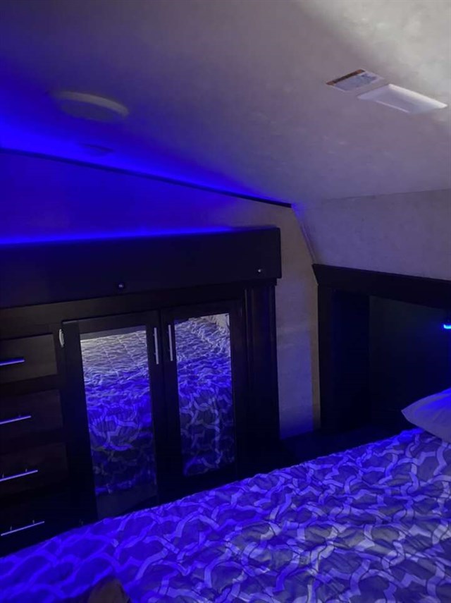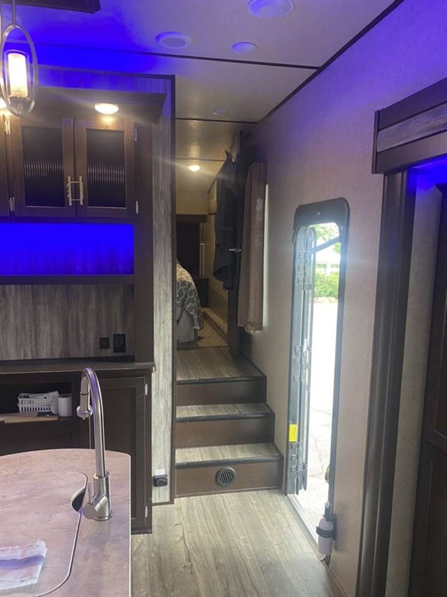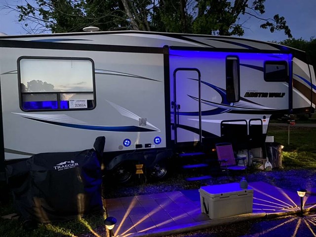 Great 5th wheel trailer dual propane tanks, added solar panels, new fridge never used. The trailer is 31’ out and indoor blue led lights awning in perfect condition. Self leveling and nice storage room underneath and so much more!