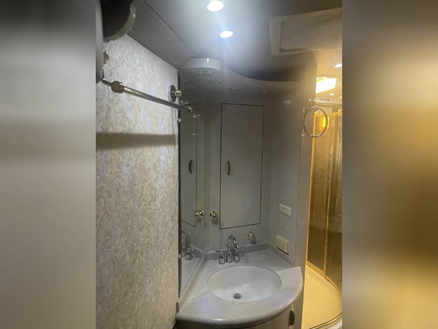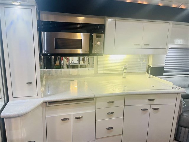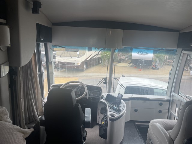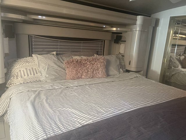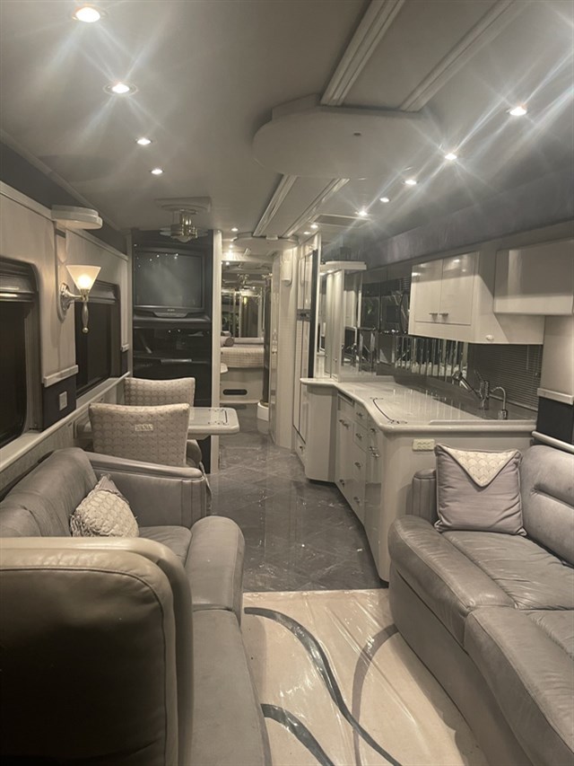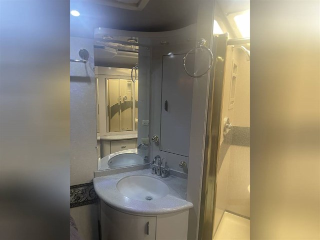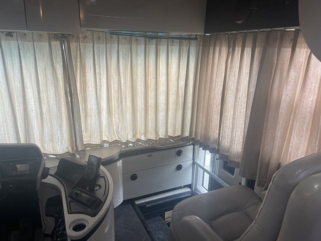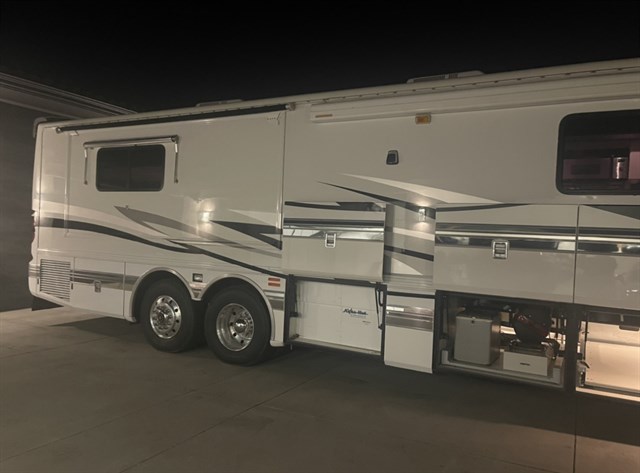 2002 American coach American Heritage model 45SS with 2 slides and only 38,000 miles. Coach has been in temperature controlled garage all it’s life. This luxury diesel pusher RV is approximately 44‘6“ in length and features the massive Cummins 500 HP diesel engine, Allison 6-speed transmission, Spartan raised rail chassis with IFS, tag axle, Xantrex 3000 watt inverter, Onan 10,000 quiet diesel with auto start and a power slide, camera back up monitoring system, Sony surround sound with Bose speakers, (3) LCD TVs, new Winegard in motion satellite, Boss cab radio, (3) Coleman ducted roof A/C units, 10,000 lb. hitch, Aqua Hot, Girard patio awnings, engine brake, air brakes, cruise, tilt, power privacy curtains, 6-way power seats with driver air ride, power mirrors with heat, power window, power step well cover, tile throughout with some carpet, heated floors, Advantium 120 microwave/ convection oven, Norcold 4-door refrigerator with ice maker, gas stove top, washer/dryer combo, private commode, energy management system, dual pane glass, day/night shades, dinette, (2) J-knife sofa, 7’ soft touch vinyl ceilings, fantastic vents, ceiling fan, decorative ceilings feature, multi-plex lighting, safe, solid surface counters, king bed, all hardwood cabinets, cedar line wardrobe closet, Magellan navigation, (2) pull out cargo trays, exterior freezer/fridge, 50 amp service, power cord reel, side radiator, roof ladder, power steps, aluminum wheels, gravel shield, spot light, docking lights, exterior stereo & speakers, fiberglass roof, solar panel, air horns, slide-out awning toppers, window awnings and more. Title in hand.