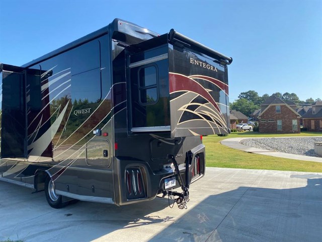 The Entegra Qwest Class C RV Model 24K is approximately 25 feet 2 inches in length and features a one piece seamless fiberglass roof, 1,000 watt inverter, one-piece seamless front cap, Ultraleather furniture, throughout, JBL premium sound, day/night roller shades, Mercedes 3500 chassis and a V-6 Turbo 188HP diesel engine.