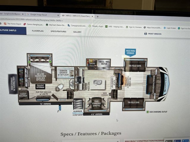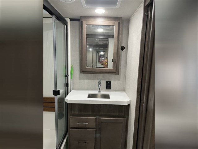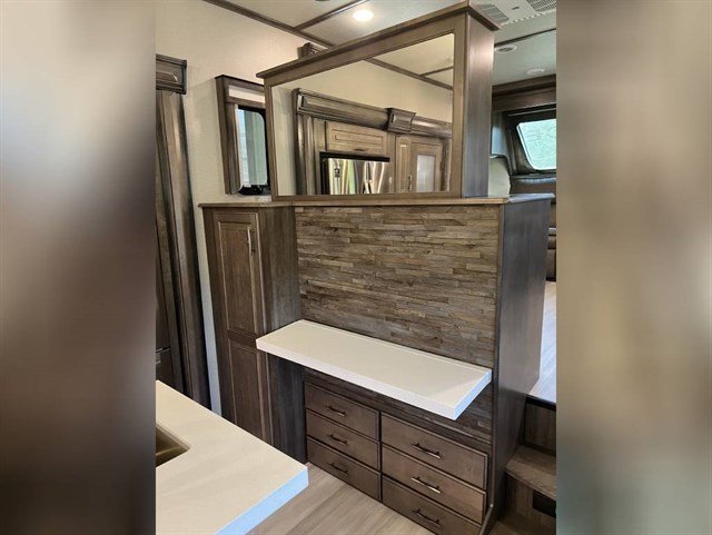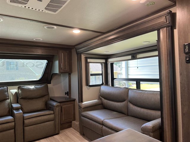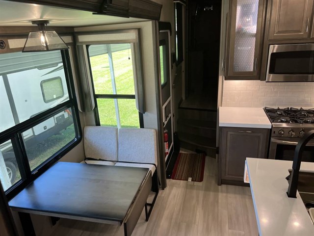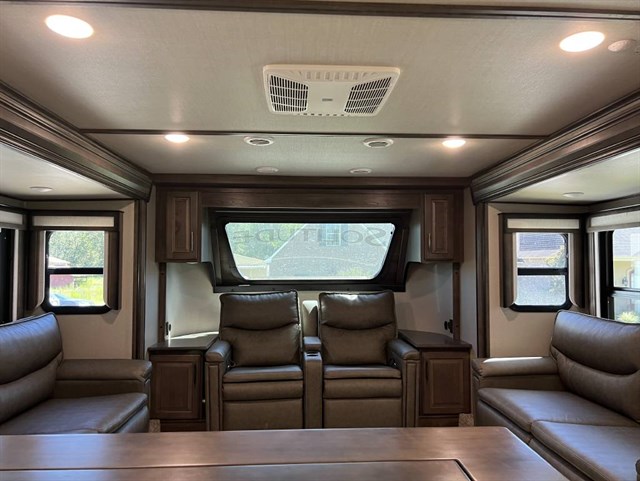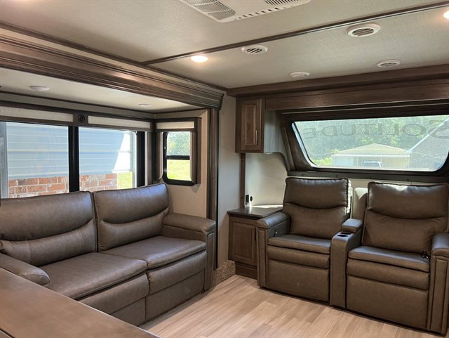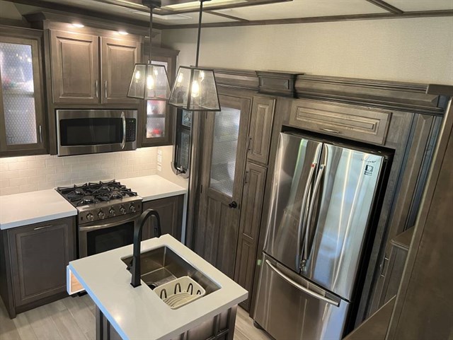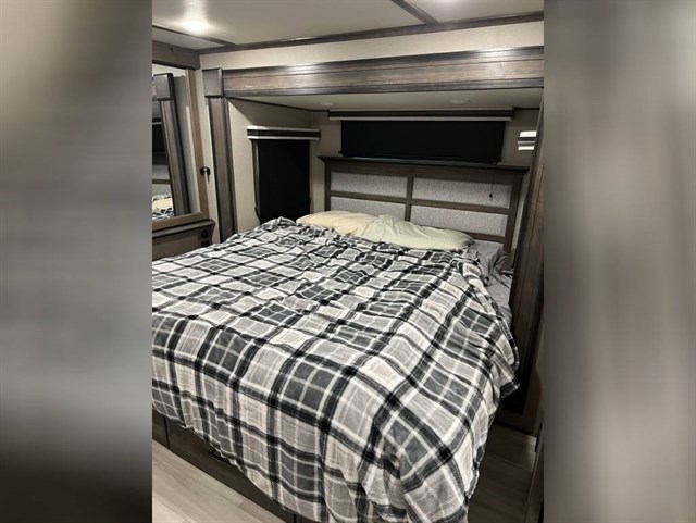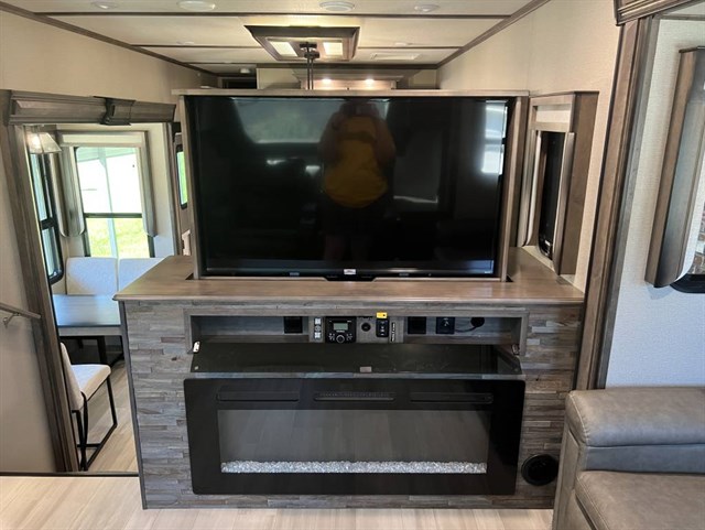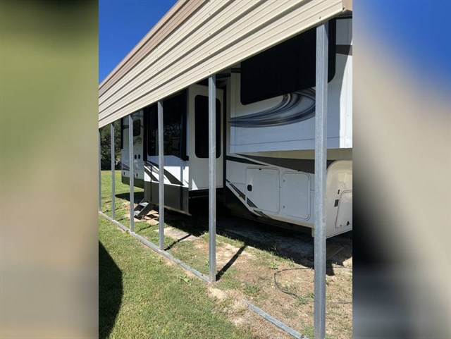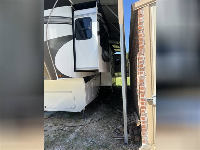 Amazing RV. Brand new. Used 8 times. Great living room floorplan. Large TV and fireplace. Lots of kitchen countertop space and pantries. Residential refrigerator. Beautiful gas stove. Shower is awesome and great for tall people. Master bedroom has lots of closet/cabinets and TV. Closet is set-up for Washer/Dryer or great for storage. Underneath compartments are a dream! Easy to store and remove any size items with this space. Two nice size awnings to enjoy sitting outside. Auto-matic jack system for easy set-up. RV has been kept under RV carport.