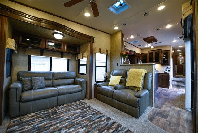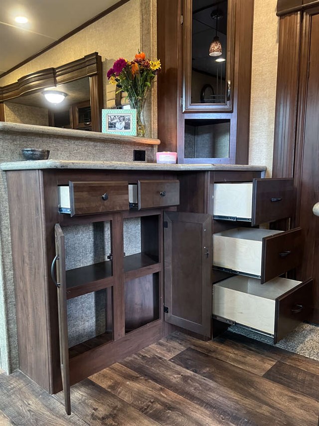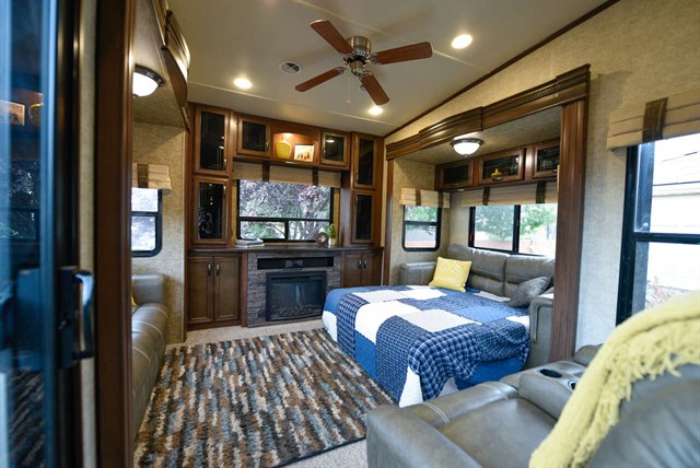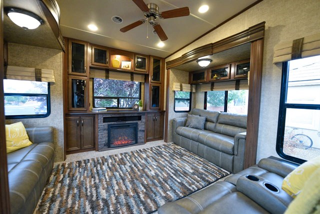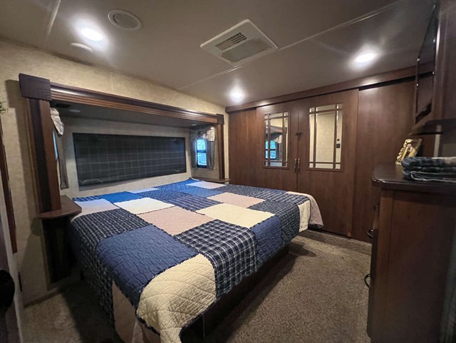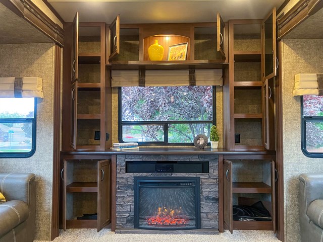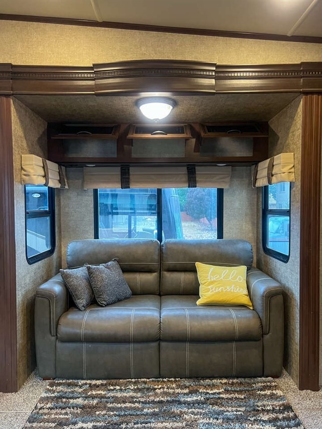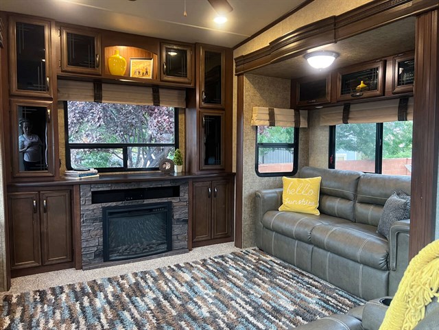 Amazing condition, sleeps 6, king bed, master closet, central vac, dual A/C, residential refrigerator with ice maker and large freezer, large pantry with 3 pullout drawers, washer/dryer combo, fireplace, 2 sofas that pull out into double beds, 2 recliners, bluetooth stereo, ceiling fan in gathering room, 5 slide outs, 6-point hydraulic leveling system, 16" tires, great outdoor storage, slide out awning for 16'0 of shade. Color scheme is beautifuland trailer is bright and airy. We have kept rugs in all walk areas to preserve flooring, Well loved and cared for. Replacing with a Class A.