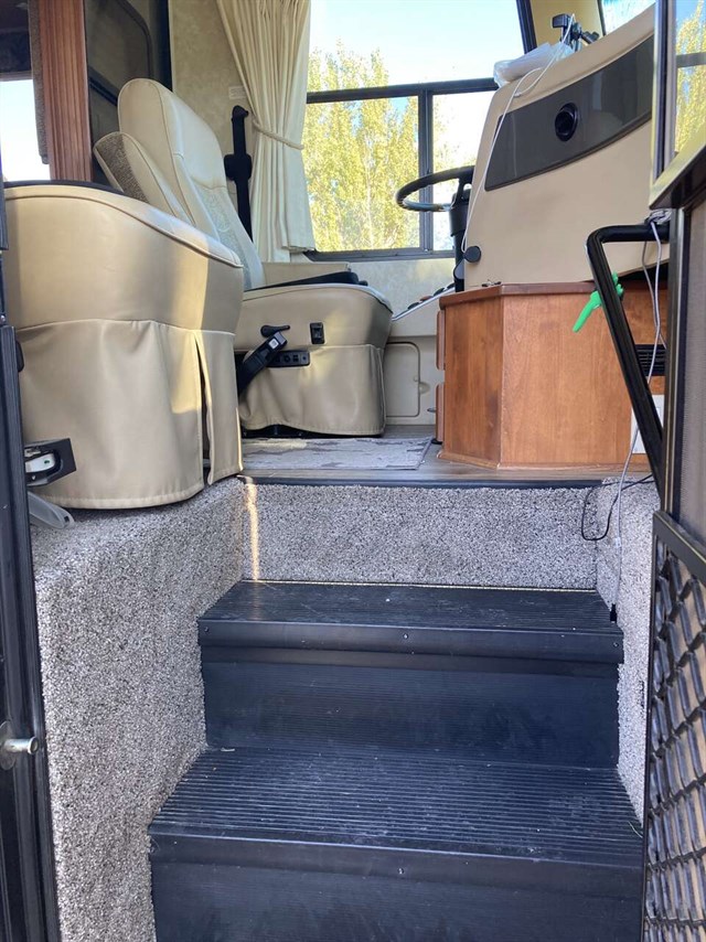 350 HP Cat Diesel, No smoking or pets, 450 watt Solar panels, New Convection Microwave, New flooring and carpet, 8000 KW Generator, 6 newer house batteries, 2 slides front room 16 ft and bedroom 10ft. also new shocks and airbags. 2 Roof Air and heat pump, Service is done . This motorhome is in immaculate condition. $70,000. or best offer.