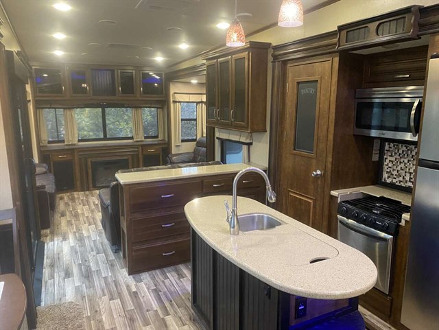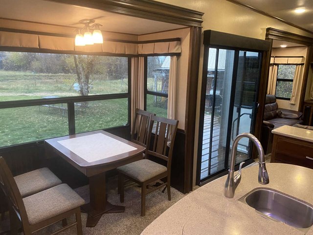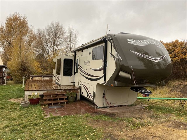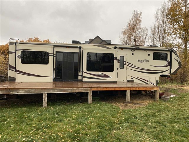 True four season rv perfect to live in while you build your dream home, heated holding tanks double paned windows, Full-size pantry washer dryer and fast recovery hot water heater electric/gas. we will also include the treated wood deck which makes a big difference if your living there full time. The deck cost us around $5,0000 to buy the material and build. This is one of the only models with the sliding glass door which walks out onto the deck. Must see