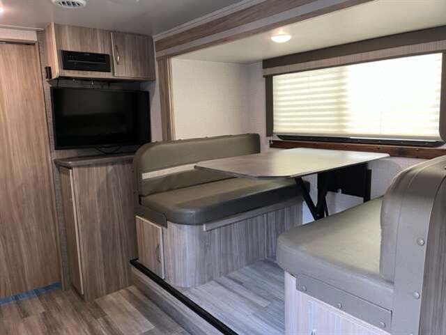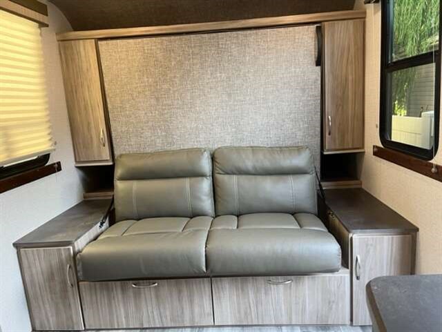 With the flexible Murphy bed and adjustable booth dinette, this Micro Minnie travel trailer gives you a functional living space that works for you and your needs. You will also enjoy the extra room that comes from the single slide, and your family or guests will enjoy the hot meals that you can prepare on the three-burner range.