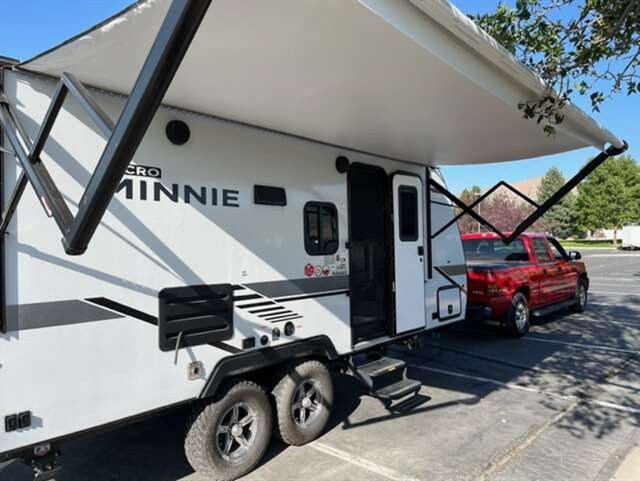 With each Micro Minnie by Winnebago Industries Towables, you will find plenty of modern conveniences, like the 13,500 BTU air conditioner and Noble Classic high-gloss fiberglass sidewalls, all in a compact and easy-to-tow package. You will also find an LED TV, an AV system with AM/FM/CD/DVD/USB/Bluetooth for indoor entertainment, exterior speakers to crank up the tunes, and an electric awning with LED lights for protection from the outside elements while you're gathered together around the campfire or simply enjoying the fresh air.