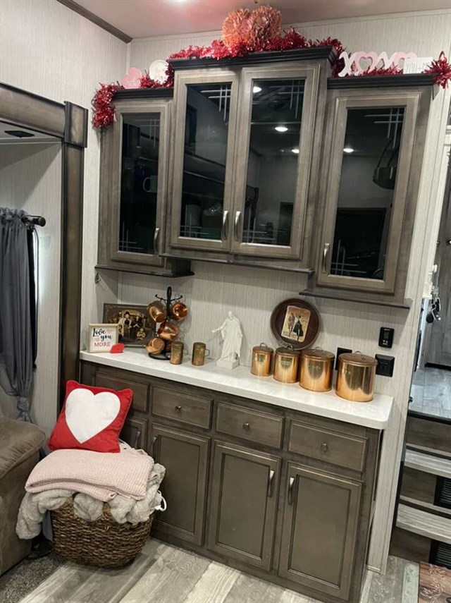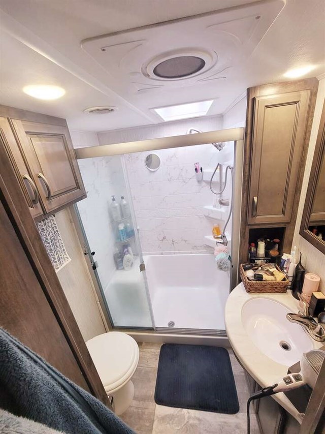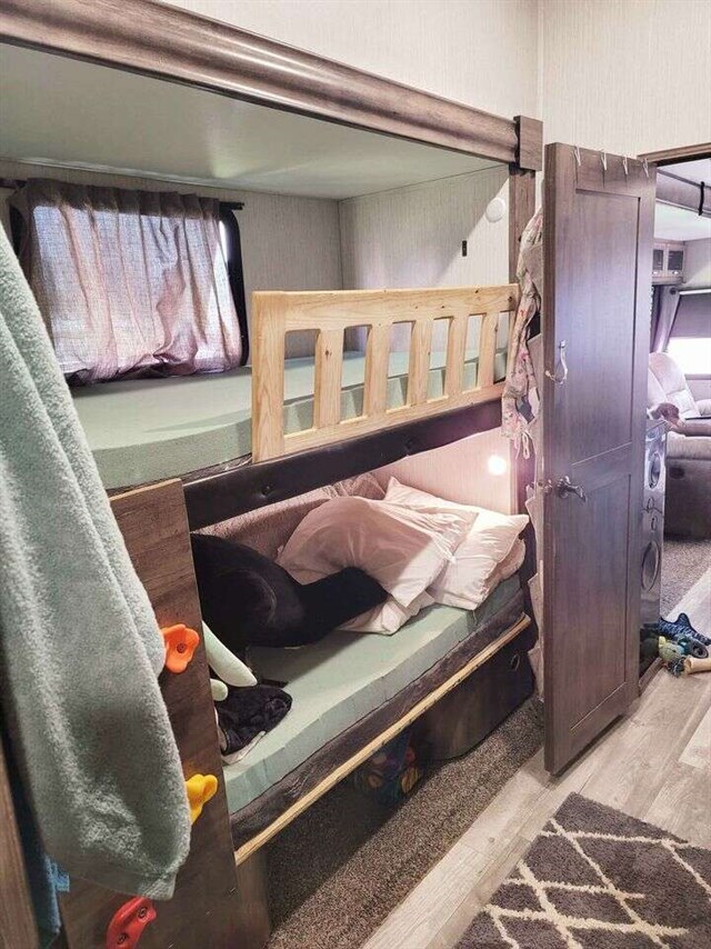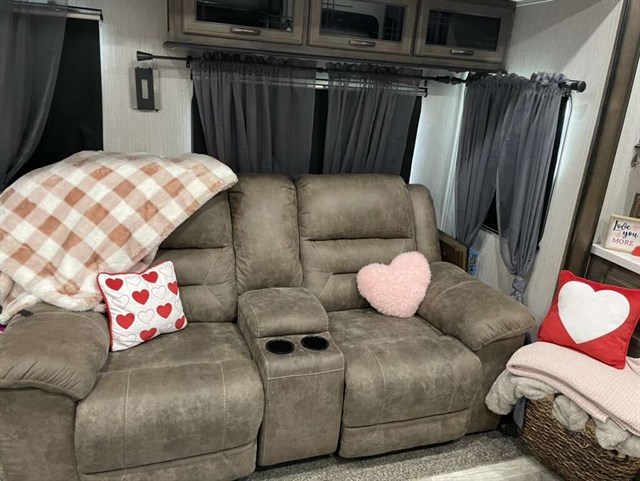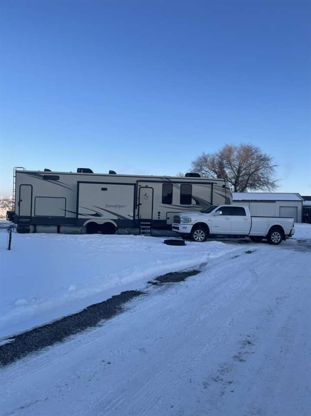 Selling 2020 Sandpiper Fifth wheel due to starting new career. In pretty good condition, with only minor wear. It has living area with tv and fireplace. Coffee bar with plenty of cupboard space. A table with 4 chairs. Full size fridge and oven/stove with four burners. It has a bunk house with a bunk bed and loft. In bunk house there is a tv with Roku. On the back half there is a full bathroom with tub/shower, sink and toilet and door leading to outside. It has a master bedroom with plenty of closet space, tv with Roku and washer/dryer. In hall leading to master bedroom is another full bath with shower, sink and toilet. We bought a new reclining love seat for living area with storage. We will include Anderson hitch and kitchen ware, if you want it with no additional cost. There has been updated plumbing throughout the trailer and new water pump.