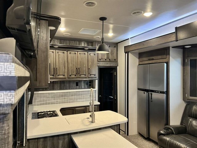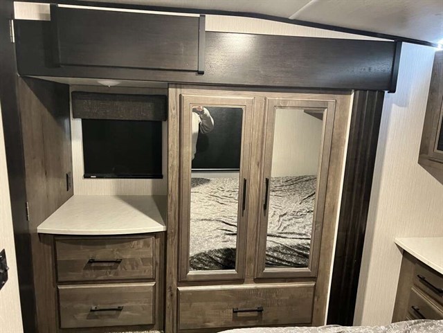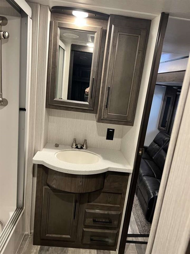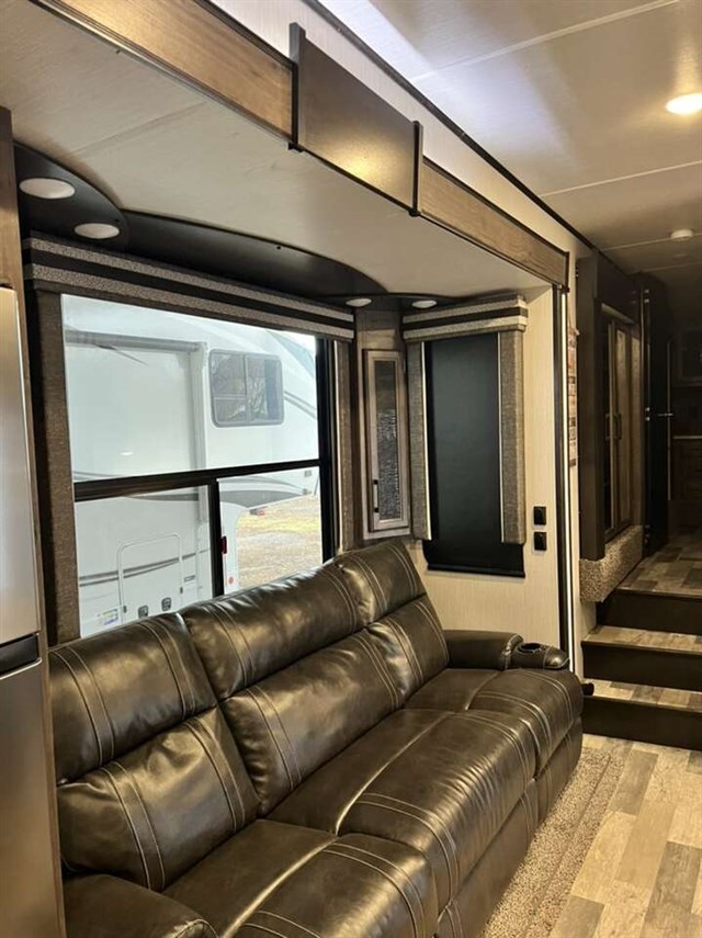 Quick Connect, Washer/Dryer Prep. Rear Elect Queen Bed w/ Convertible Sofa, LED Lighting, Residential Leather Backed Furniture, Back Bit Fascia-Main Living Area, Alum Quad Steps, Side Spray Port, 30° Microwave Oven, Fireplace (N/A 3713 & 4270), MORryde 3000 CRE Suspension, Roller Shades, 2nd 20 Gal Aux Fuel Cell, STOR-MOR Storage System,Side Folding Ladder, Rear Dual Side Awning,55* TV. TPO Roof, Azdel Substrate Exterior Graphics - Blue