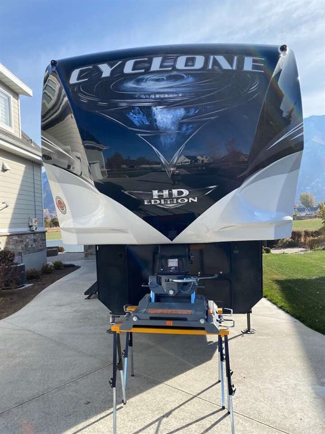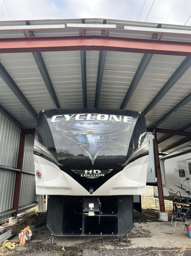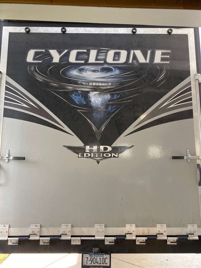 Cyclone HO Pkg.High Gloss Metalic Sidewalls, 5.5 Onan Generator, 7000# Dexter Axles, Hyd 6 Pt Auto Leveling, 16° Alum Wheels w/ G-Rated Tires, Rear & Side Camera Prep. Lg Dbl Dr Gas/Elect Refer (most models), 20 GPH Water Heater, 2×15K BTU A/C, 50 Amp Svc, Solid Surface C-Tops, Tinted Max Vent Windows, Enclosed & Heated Underbelly, Insulated Doors, Garage D-Rings, 1 Pc Fiberglass Shower, Stainless Steel Appliances & Hardware, 30 Gal Fuel Station & Timer, 12V AM/FM Stereo w/CD/DVD/MP3-Garage, Sound Bar System, Rear Pull Down Screen, Residential Mattress. LP
