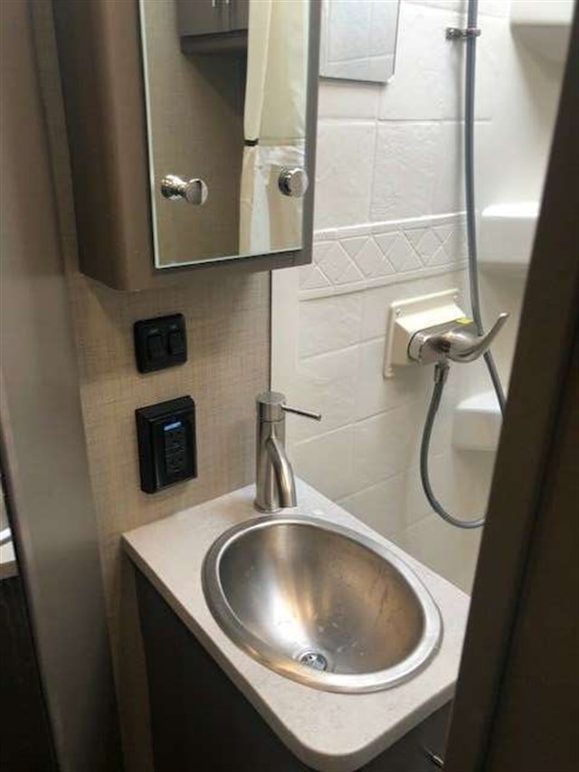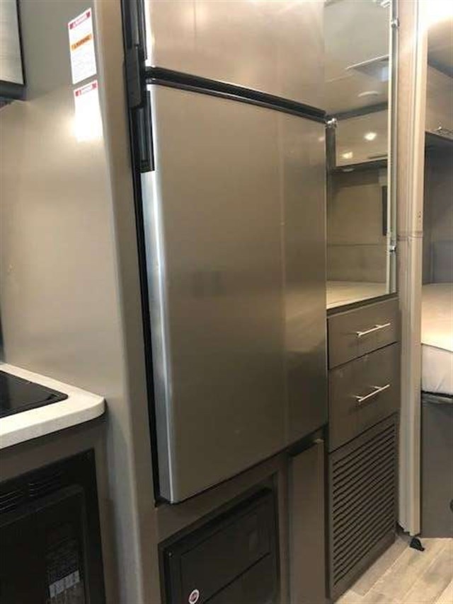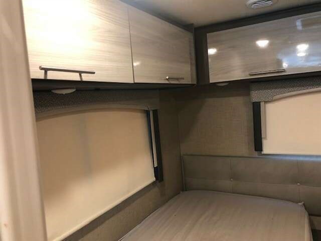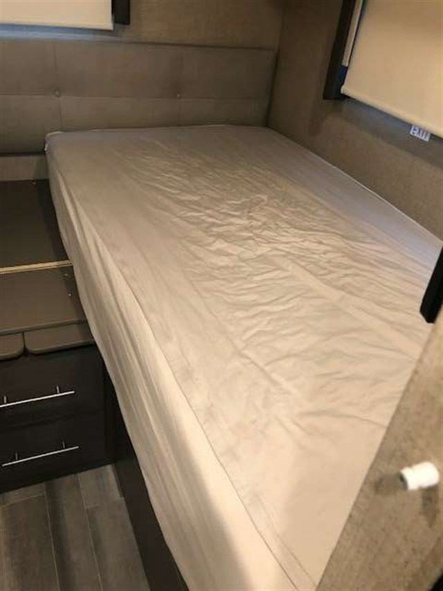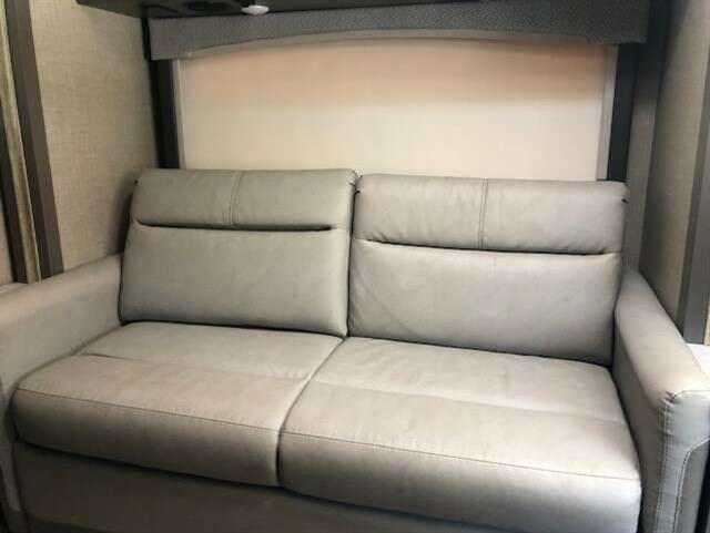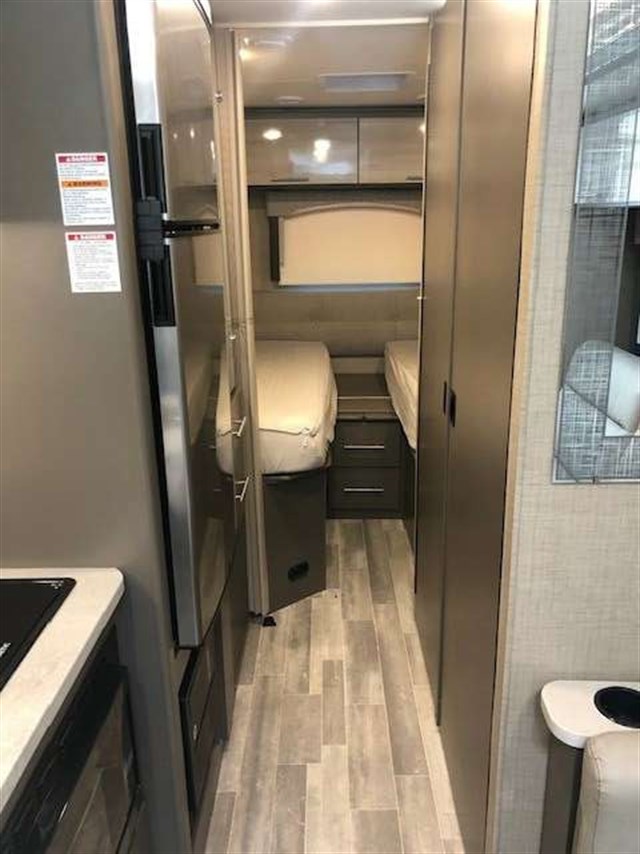 Pack your bags, grab your spouse, and head out to the open road with this motorhome! The two rear twin beds can convert into a king bed and the 32" TV lets you drift off to sleep watching your favorite movie. You won't need to get ready at any public facilities either thanks to the full bathroom with a 27" x 27" neo-angled shower for you to start off your mornings with a steamy, hot shower. Once you're ready for the day, you can head to the kitchen and grab some bacon to fry up on the two burner gas cooktop with electric start, and enjoy it at either the front captain's chairs with a coffee table in between or at the 68" sofa bed with a removable pedestal table. There is also a drop-down overhead bunk for you to bring along a couple kids or friends!
