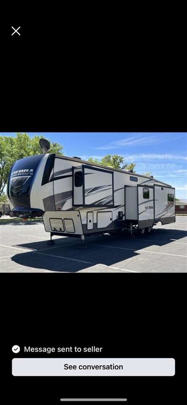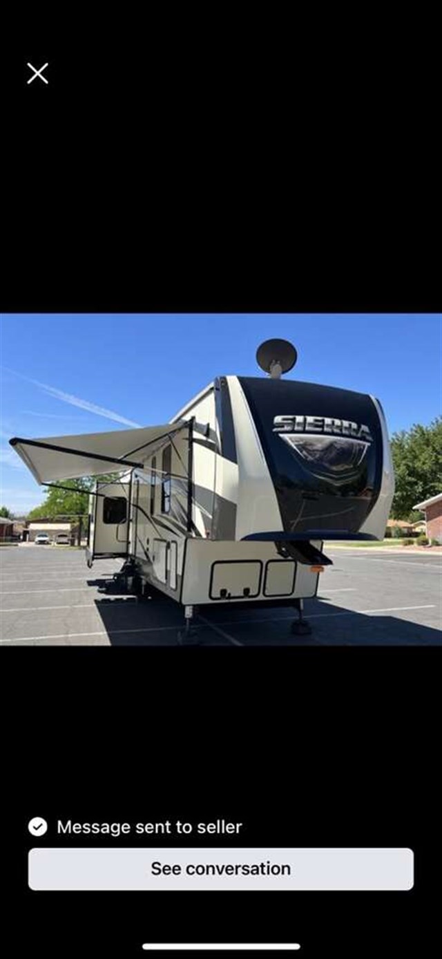 Great RV we purchased last September and lived full time until now. It has been covered all winter. Minor wear and tear from living full time. Bunk room, loft, couch bed, and bedroom. Washer and dryer. Fireplace. Big fridge, microwave, oven. Anderson hitch adapter included. $1000 value used a half dozen times Ready for the summer