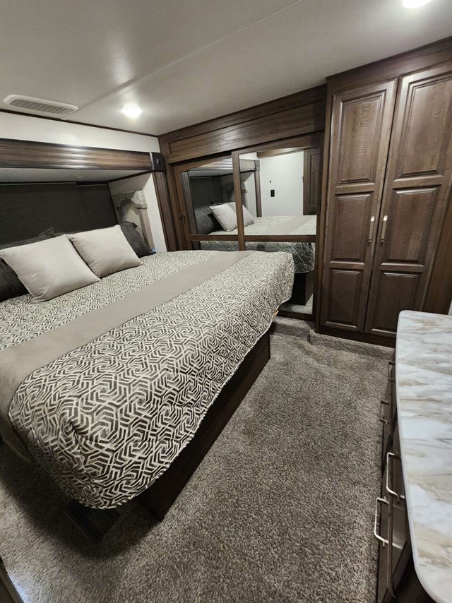 Beautiful 100" wide Grand Kitchen (GK) Model 4 Slideouts 6 point hydraulic Auto Leveling 2 Air Conditioners 2 Electric power retractable awnings (30')