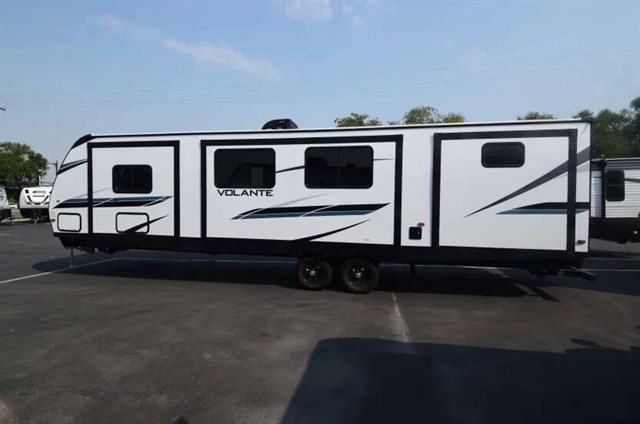 With each Volante travel trailer or fifth wheel by CrossRoads RV you will enjoy years of use and all-seasons camping with the fully enclosed and forced air heated underbelly. You'll appreciate USB ports for your tablet or phone, and each model features WiFi prep if you need to get some work done while away from home. These models include an XL 50/50 stainless sink in the kitchen, along with steel ball bearing drawer guides, and a 10.7 Cu. Ft. 12V refrigerator for all your perishables. The flush floor slide out in the living room with large dinette windows will provide a great view of the great outdoors, and you can jam to some tunes with the AM/FM Bluetooth sound bar and much more!