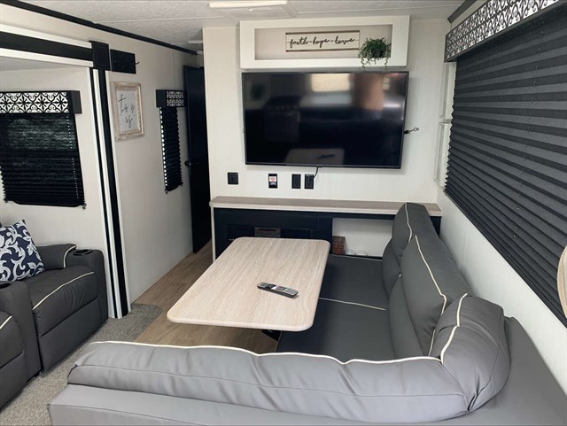 This trailer is stunning. We are the original owners we have taken it out twice and absolutely love it. Due to health issues, we are having to give it up. Its like a second home. Email or call the number below to see more pics. Upgrades & Factory extras installed: Lippert/Solera White/Grey two tone/fade awning, custom battery mount bracket up to 4 batteries, added wiring and switch for bank 1 and bank 2, rear 2” receiver for a cargo carrier, 500 lb capacity, Go Power solar package with 2 – 200 watt roof mount panels and GP-PWM-30-UL solar controller. Can boondock without shore power. Weight. Dry Weight . 6,747 lbs. Payload Capacity. 2,733 lbs. GVWR . 9,480 lbs. Hitch Weight 850 lbs.