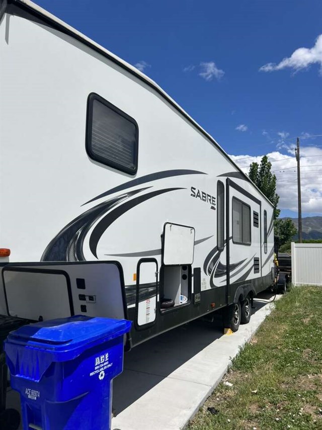 Beautiful half ton towable 2020 Sabre Fifthwheel. 33 feet long. Only used a handful of times but just don’t have the time to use it to justify the expense. Has a bunk room with two singles and a double size beds. U-shaped dinet folds into a bed. Couch is a double recliner that is heated and massaging. Master has a queen size mattress with memory foam topper. Has huge amounts of outdoor storage along with the outside kitchen with mini fridge and sink and stove burners. Has outdoor shower as well as a hose to hook up. Has a hitch and wiring on the back to hook up and pull doubles as well Please text me with any questions. Located in Tooele. Come view it!! Very very clean and well maintained.